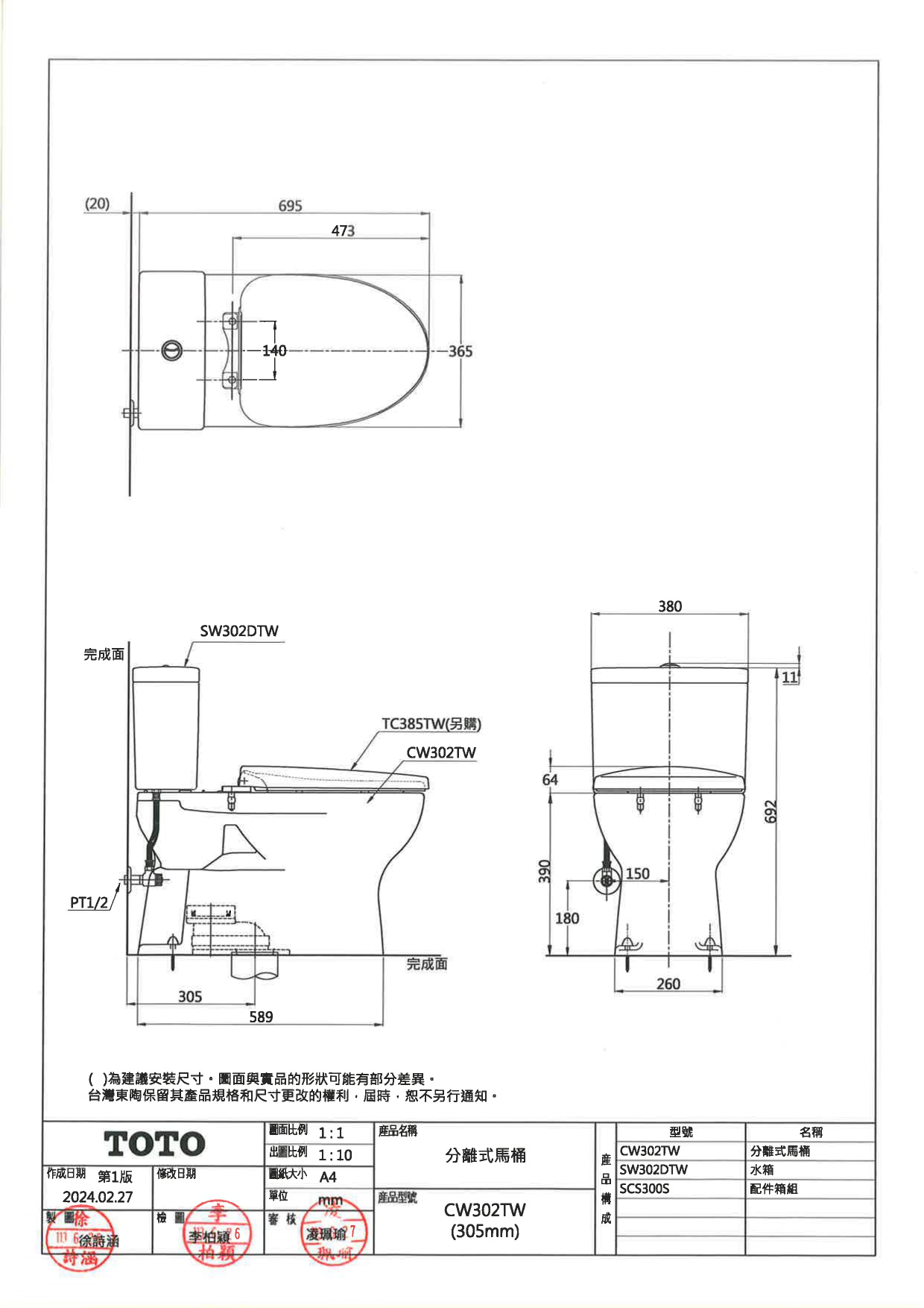 - 產品型號 CW302TW