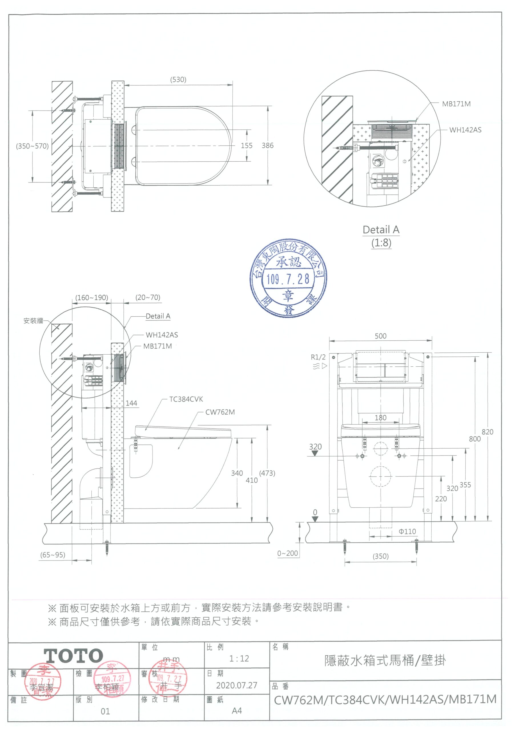 TOTO CW762M 隱蔽水箱式馬桶/壁掛