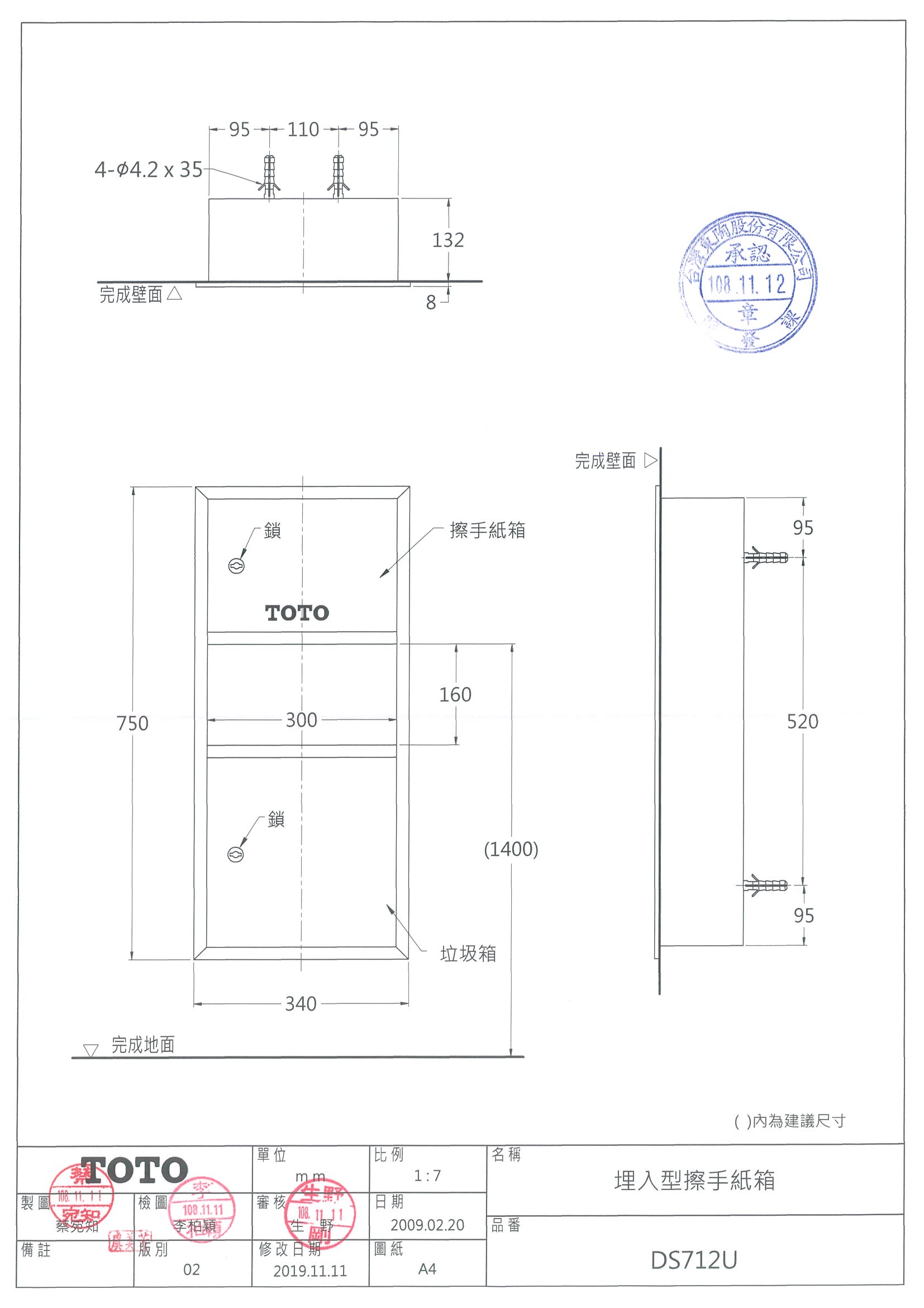 TOTO DS712U 埋入型擦手紙箱 數量