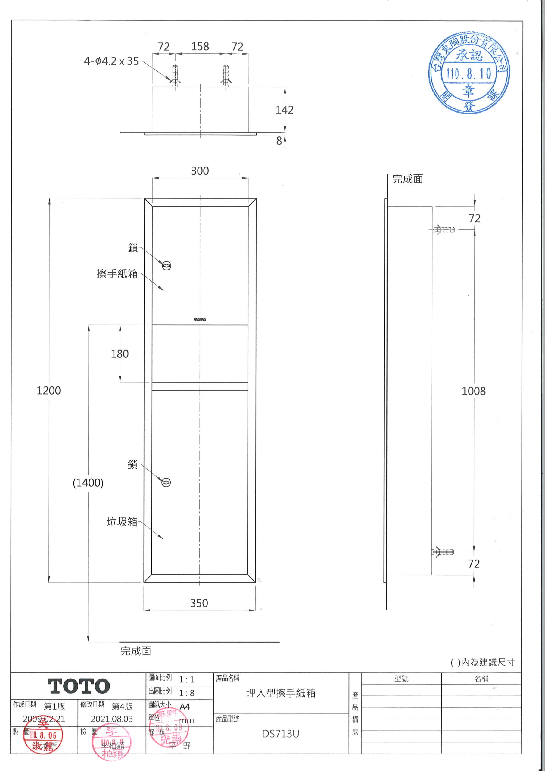 TOTO DS713U 埋入型擦手紙箱 數量