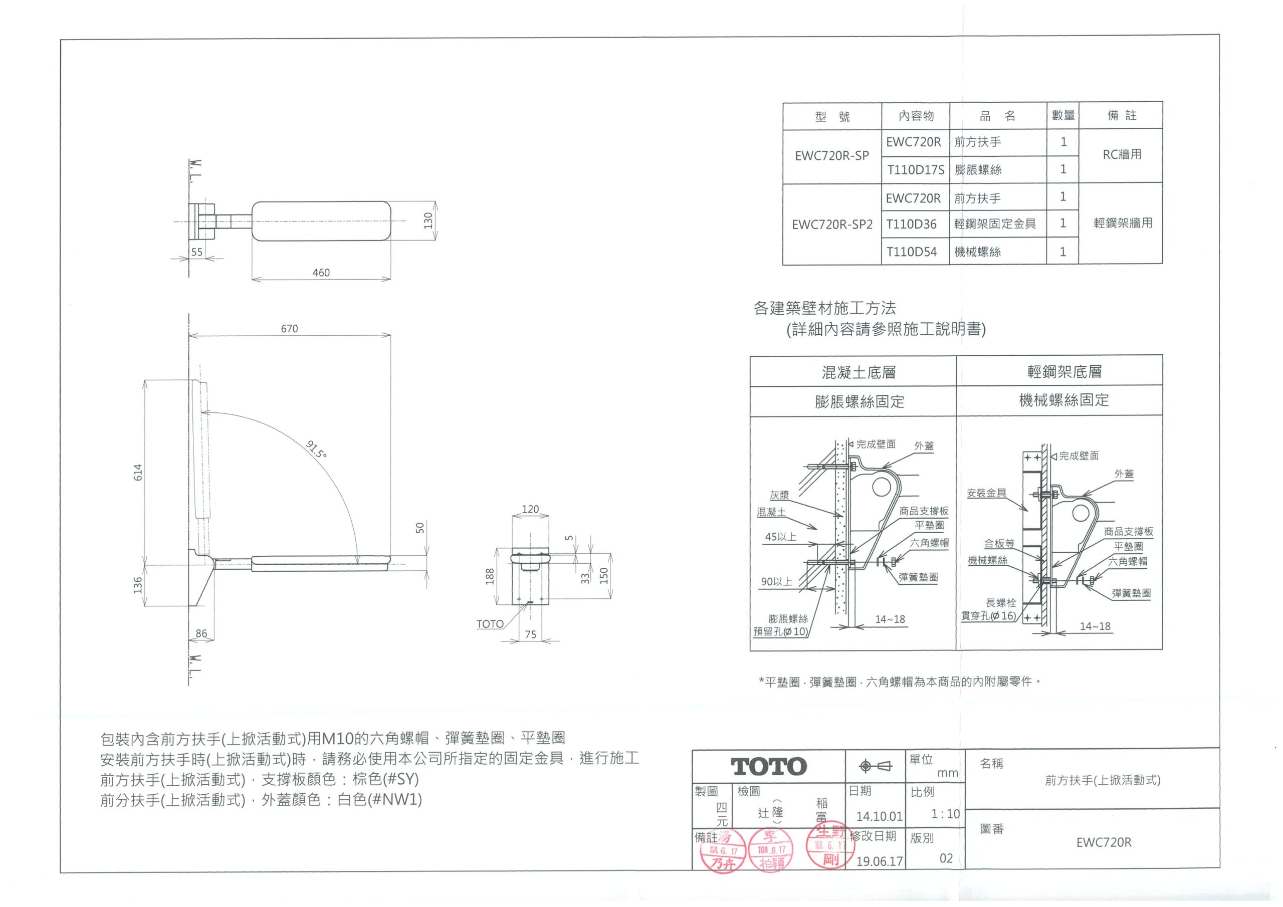 TOTO EWC720R 前方扶手(上掀活動式)