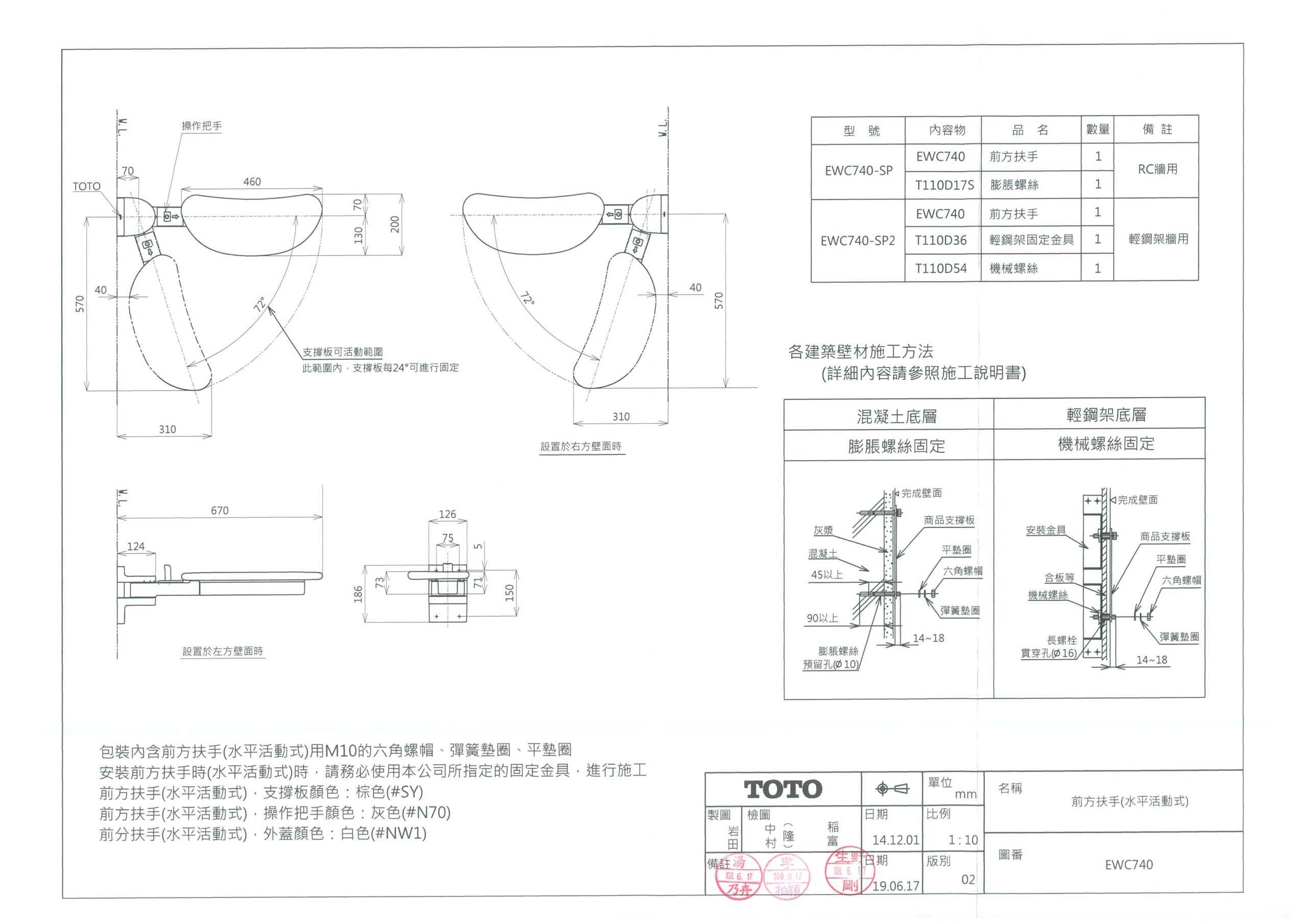 TOTO EWC740 前方扶手(水平活動式) 數量