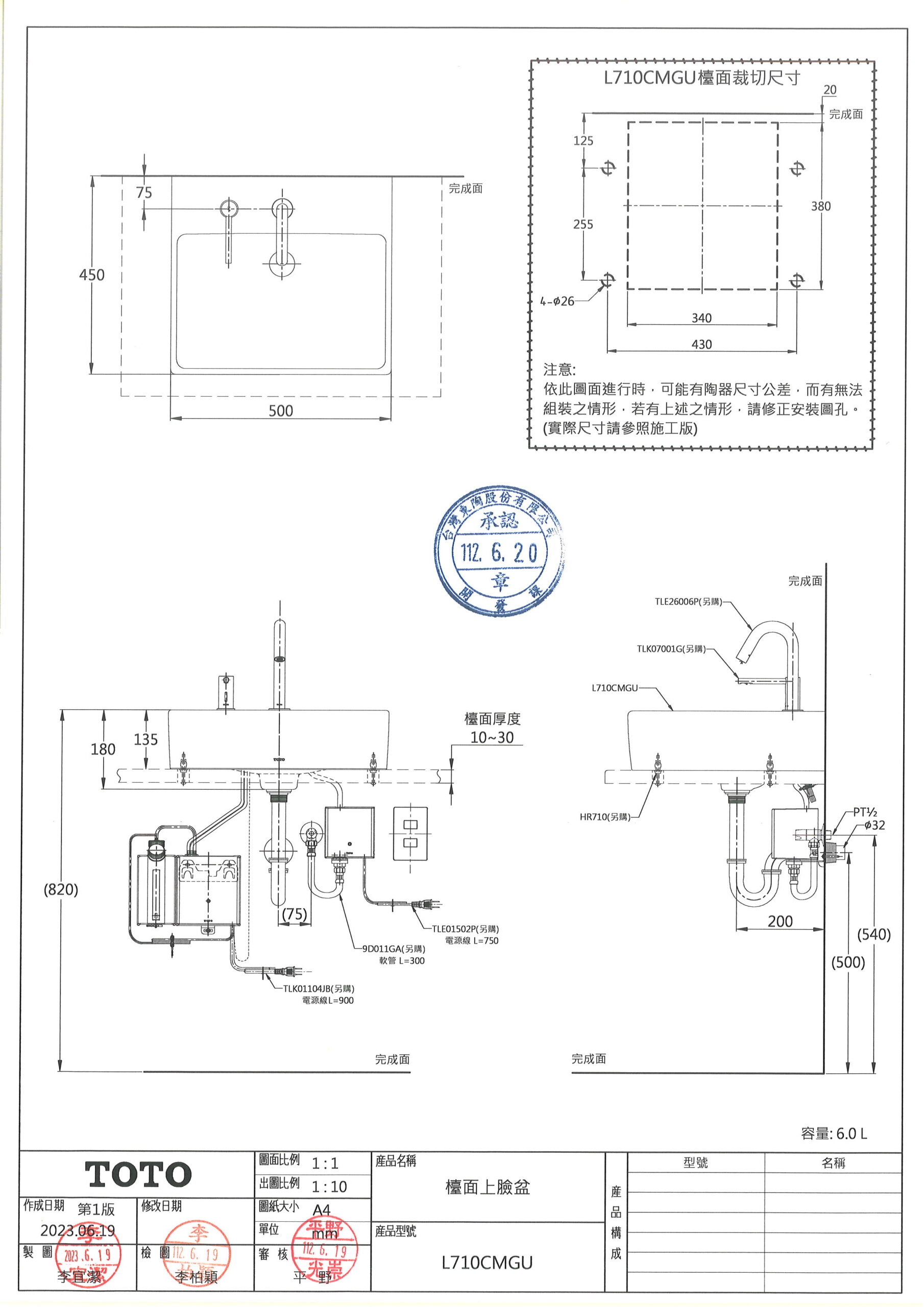 TOTO L710CMGU 檯面上臉盆