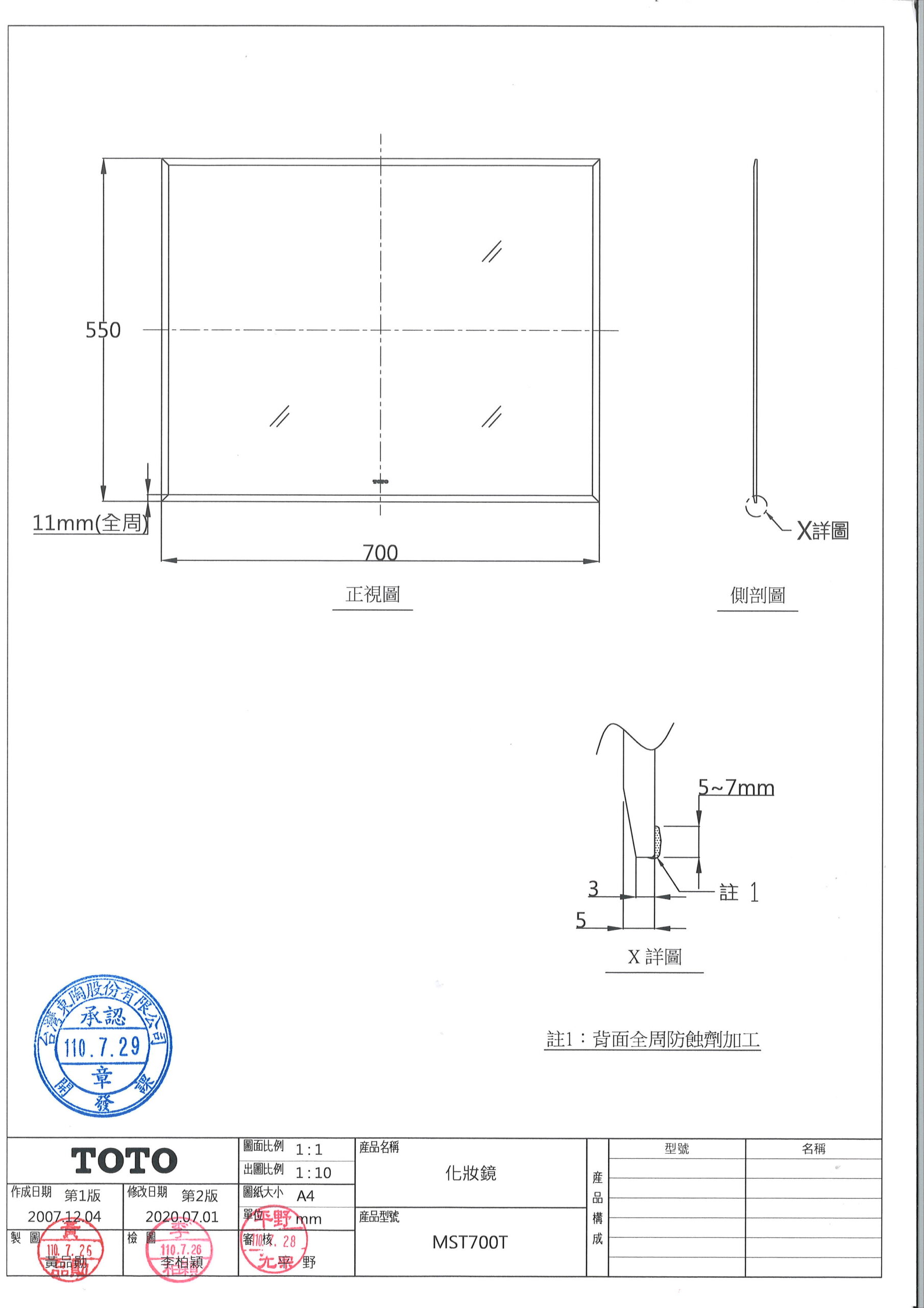 TOTO MST700T 化妝鏡