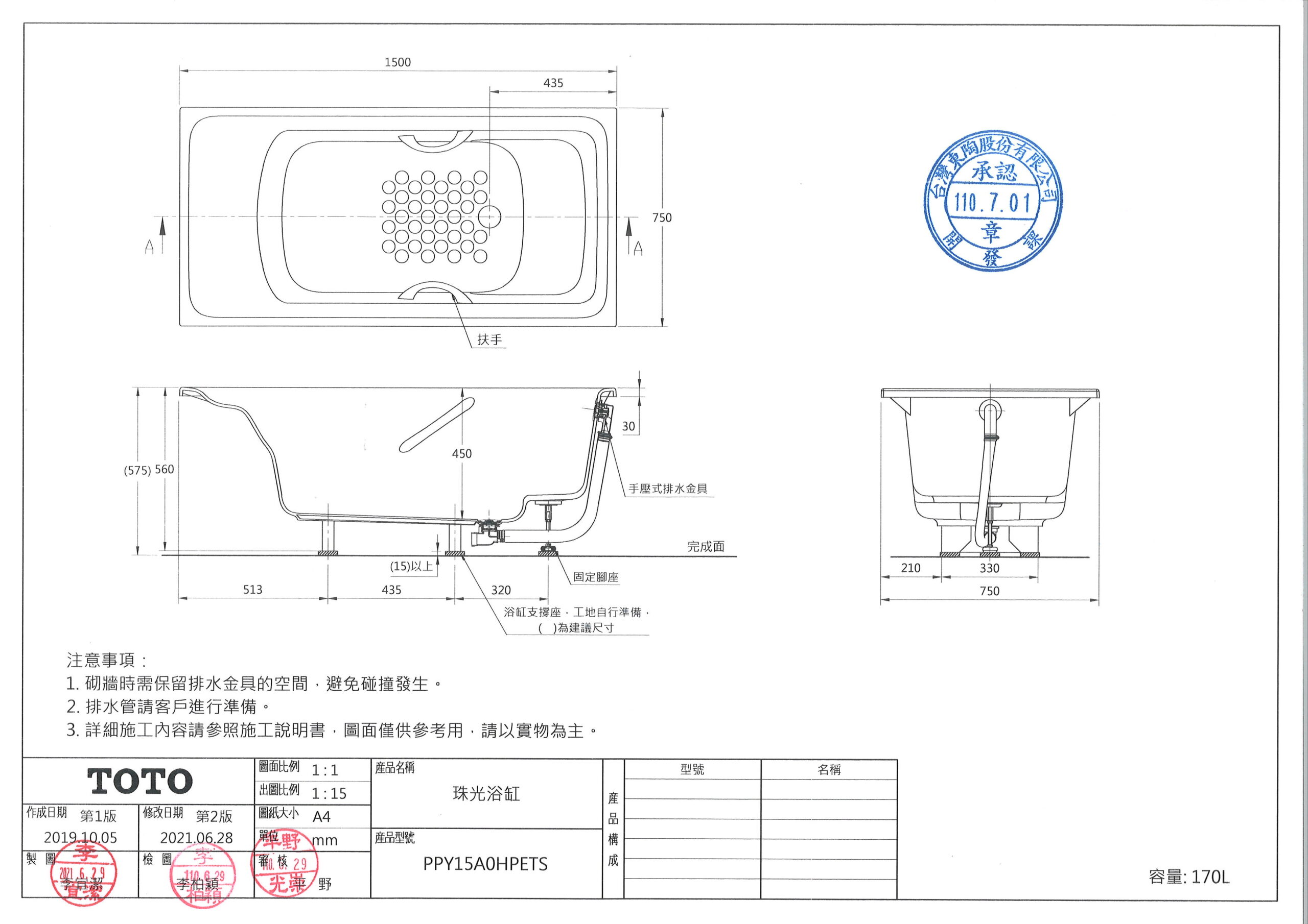 TOTO浴缸尺寸圖