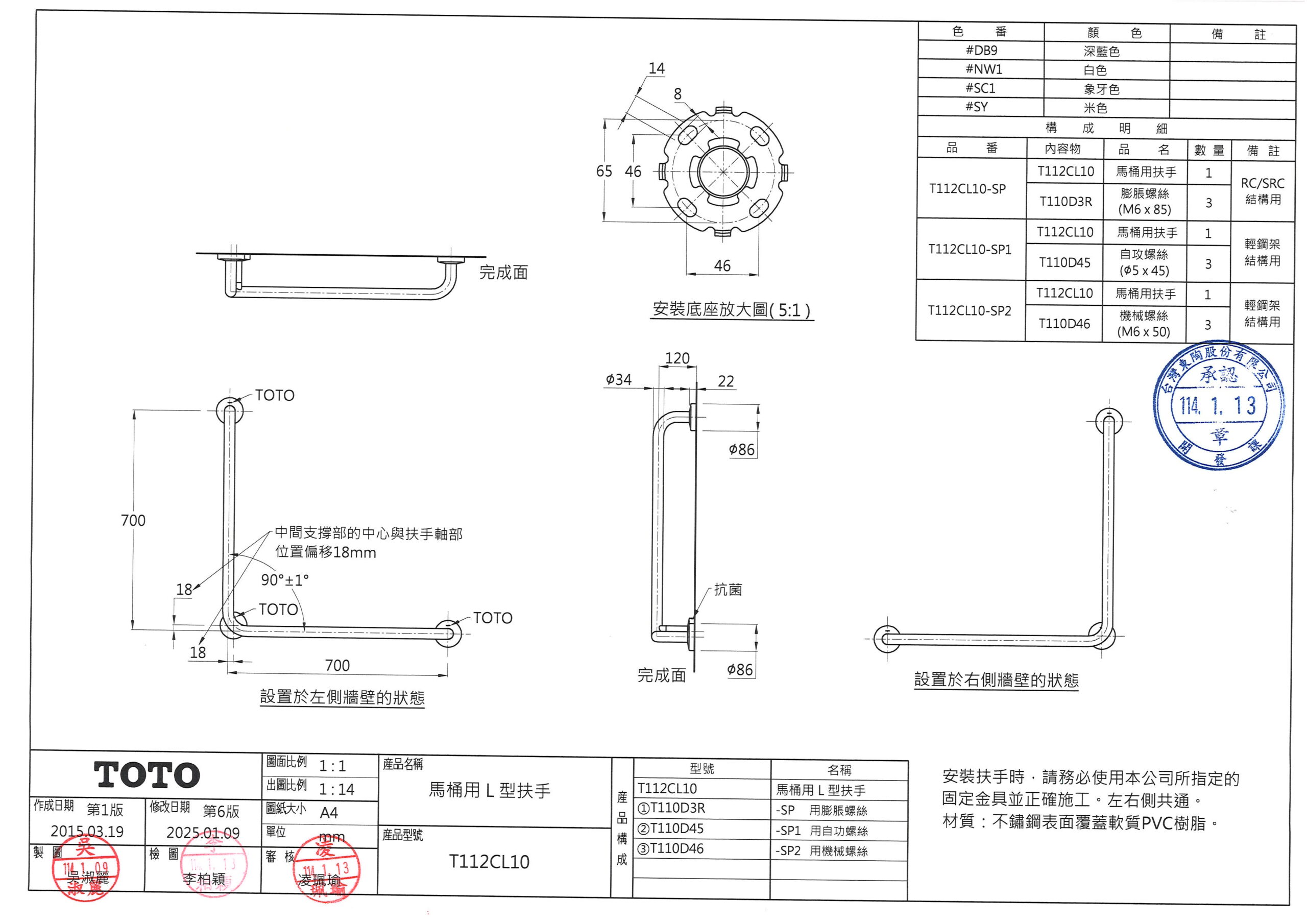 - 備 註T112CL10-SP( RC牆,膨脹螺絲 )
