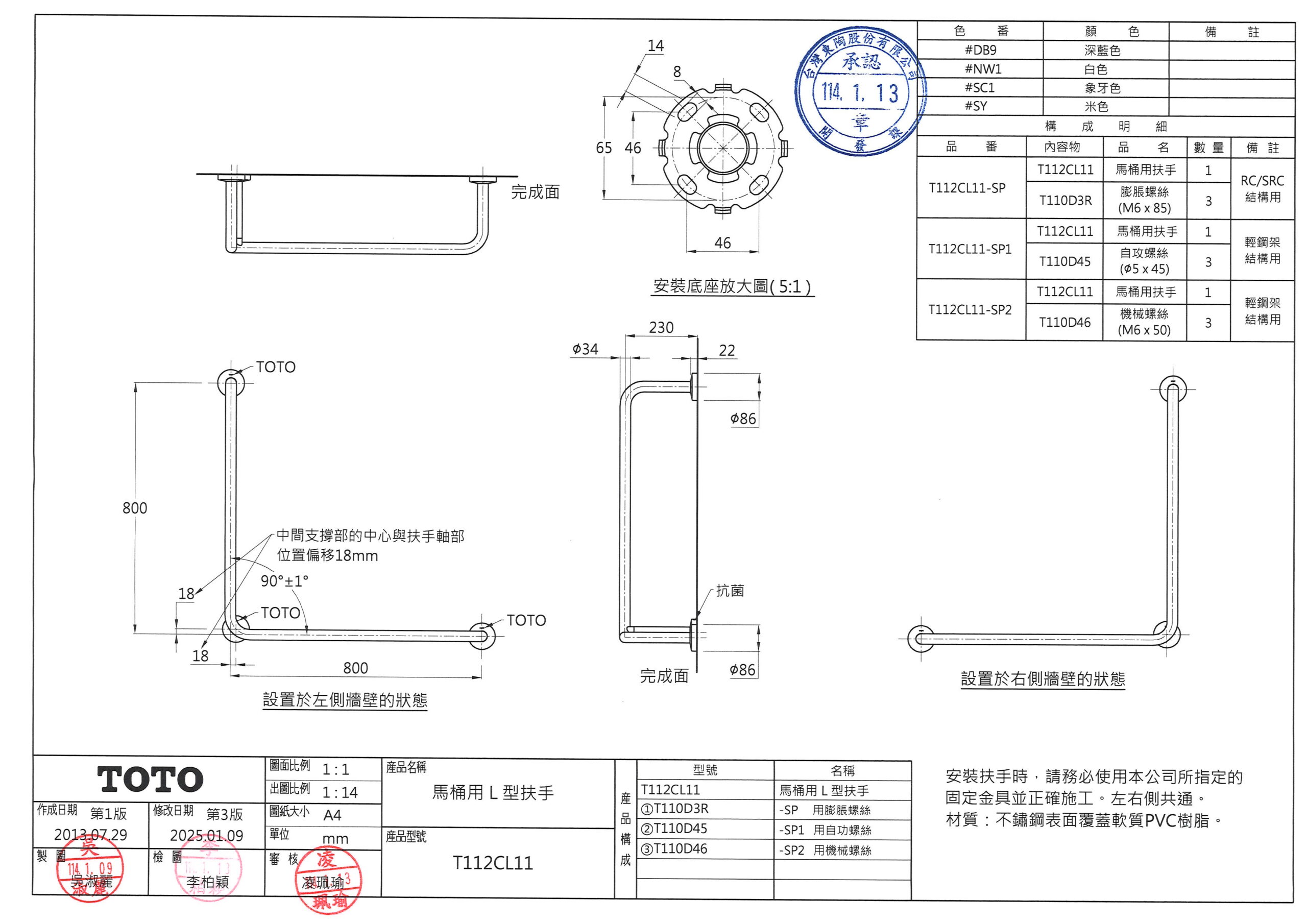- 備 註T112CL11-SP( RC牆,膨脹螺絲 )