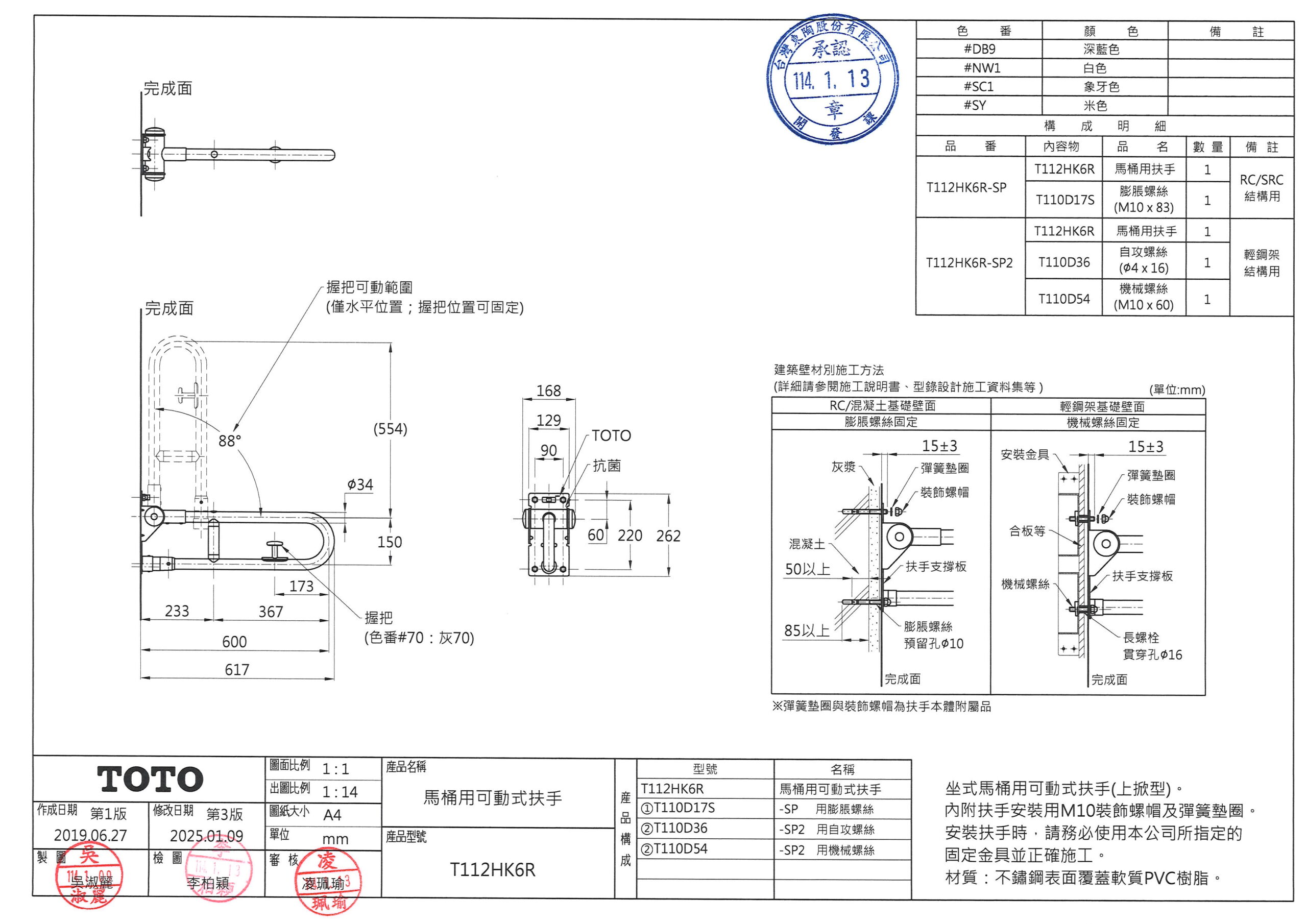備 註T112HK6R-SP( RC牆,膨脹螺絲 )