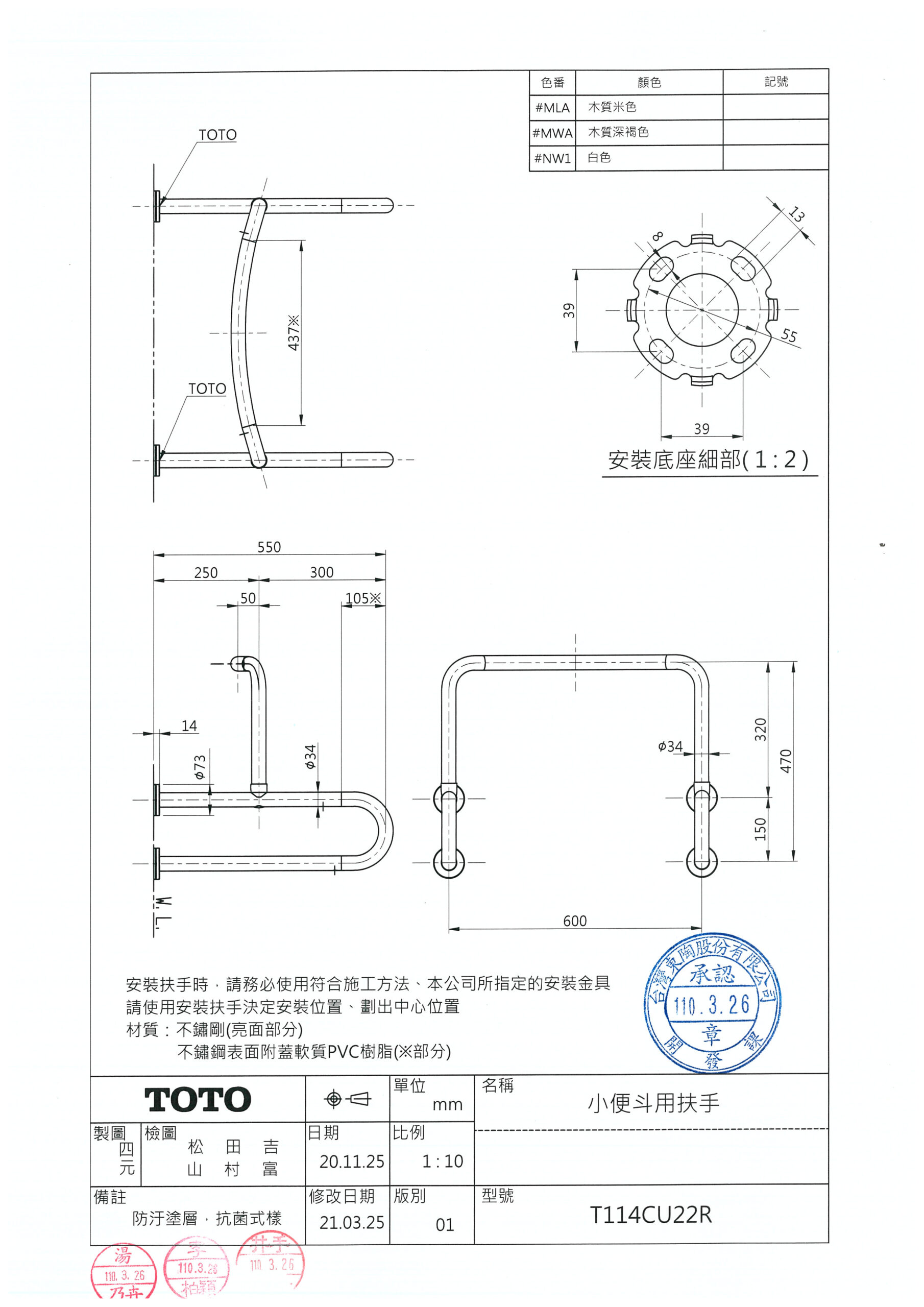 TOTO扶手尺寸圖尺寸圖