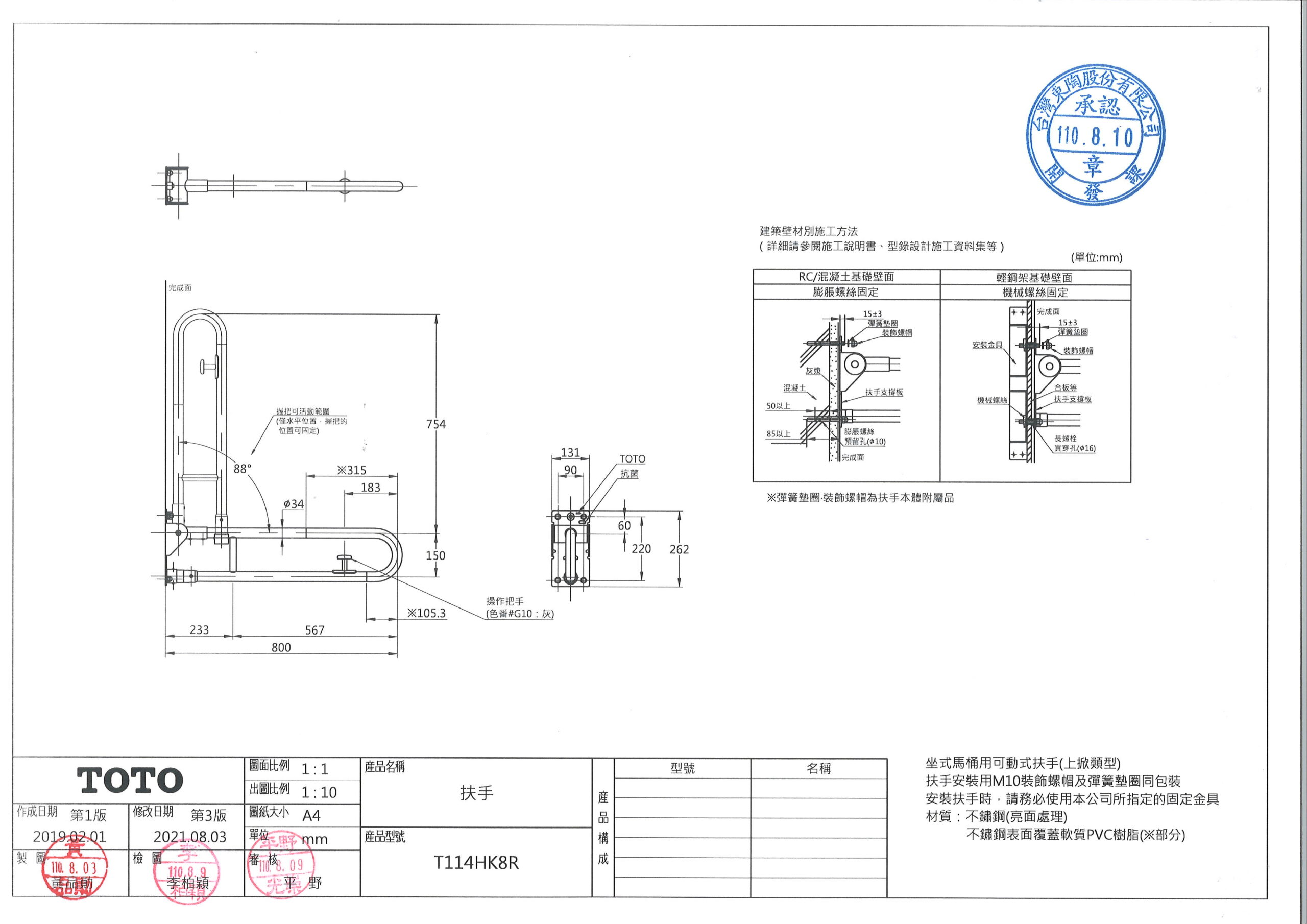 TOTO扶手尺寸圖尺寸圖