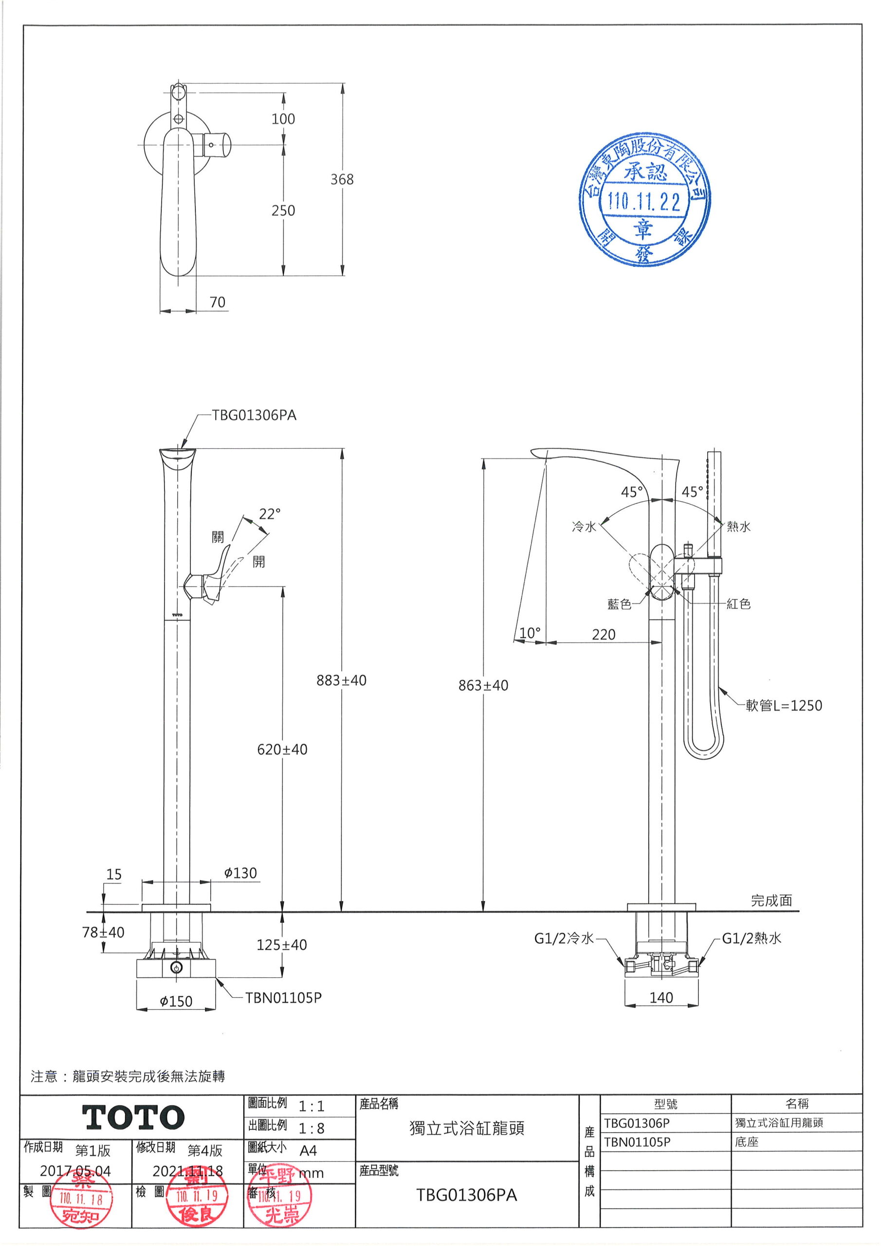 TOTO TBG01306PA 獨立式浴缸用龍頭