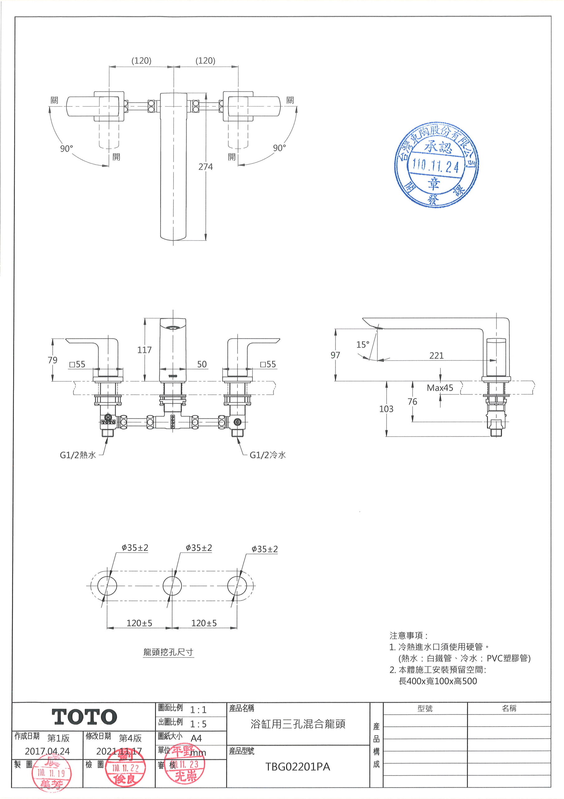 TOTO TBG02201PA 浴缸用三孔混合龍頭 數量