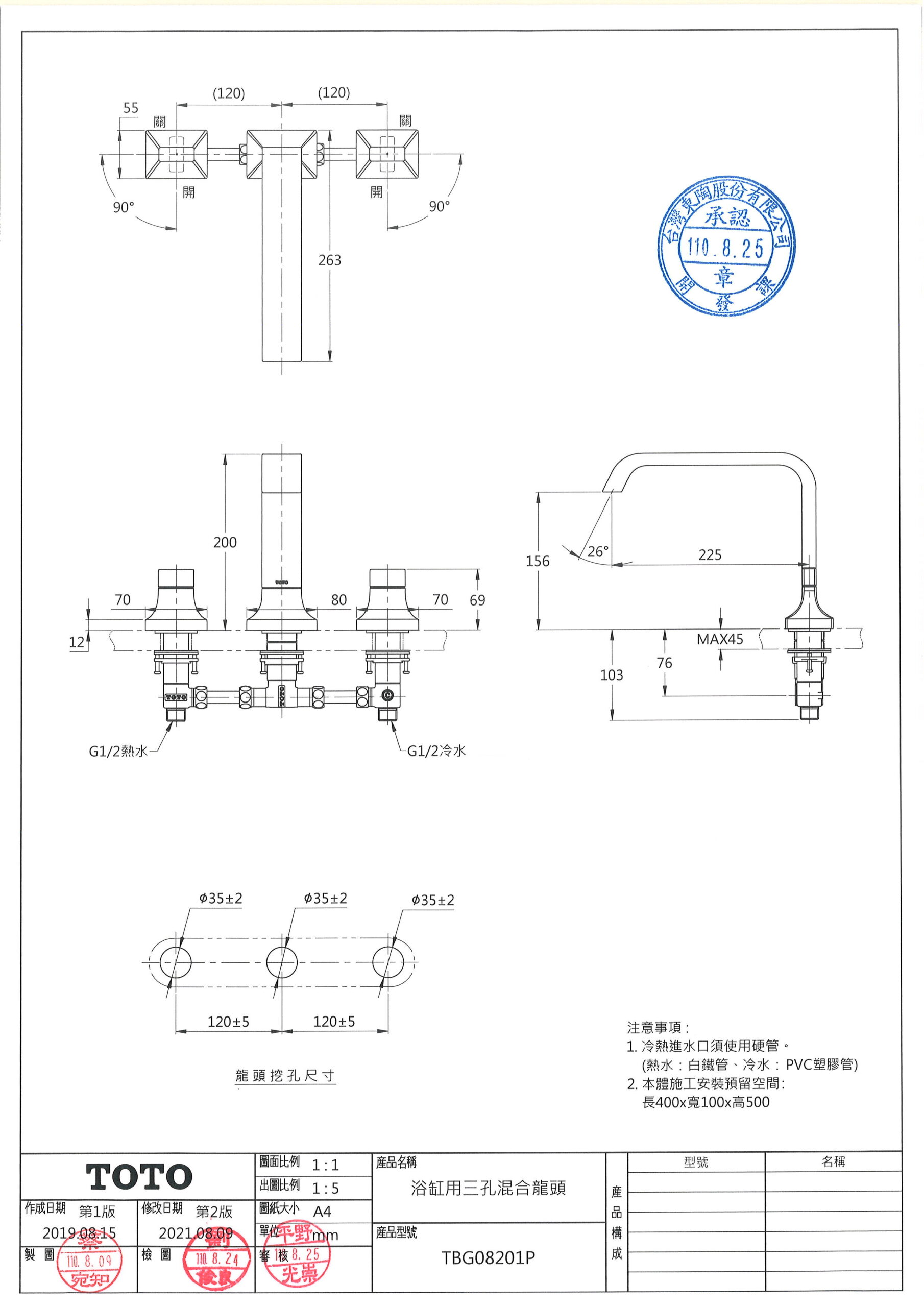 TOTO TBG08201P 浴缸用三孔混合龍頭 數量