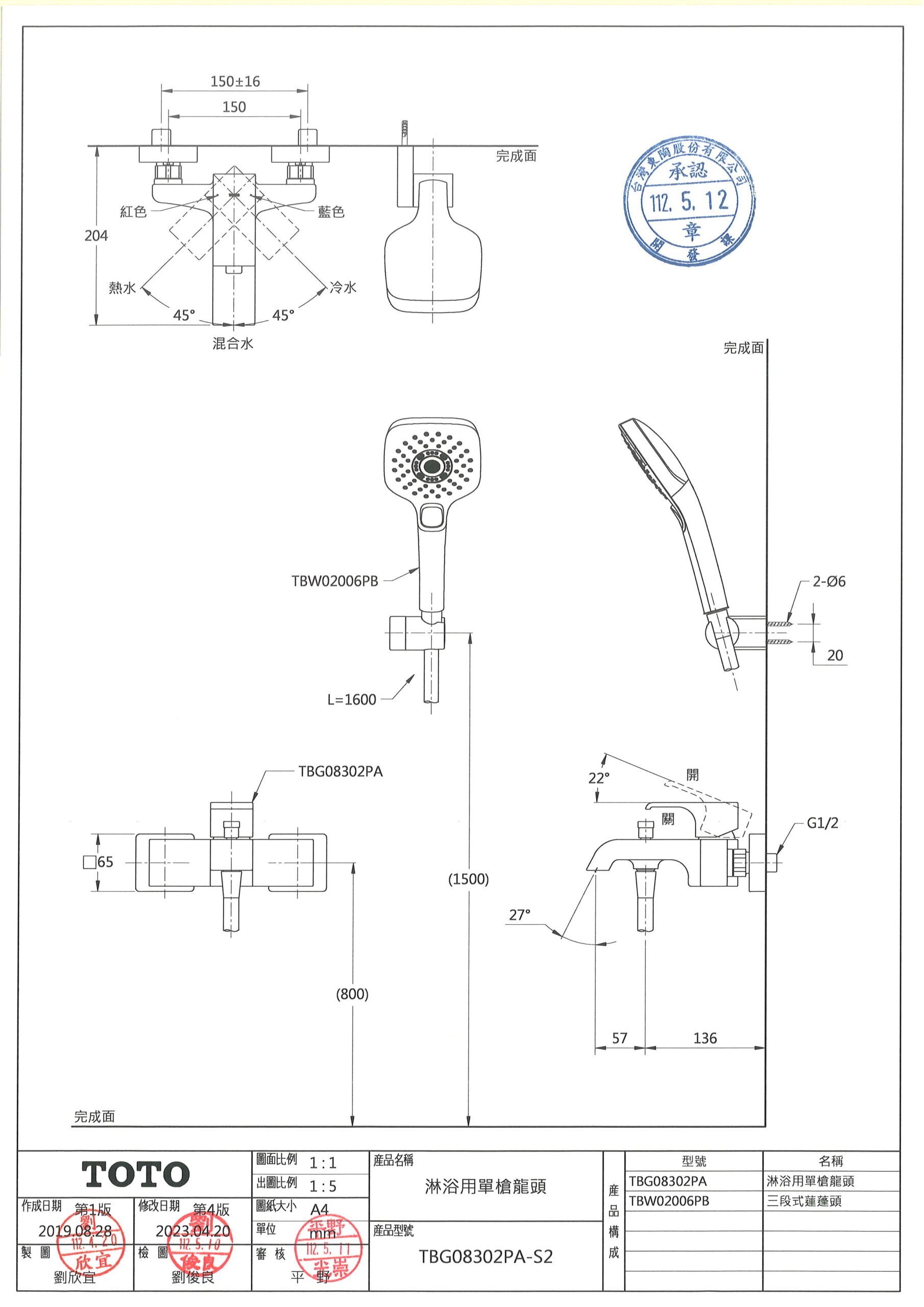 TOTO沐浴龍頭尺寸圖