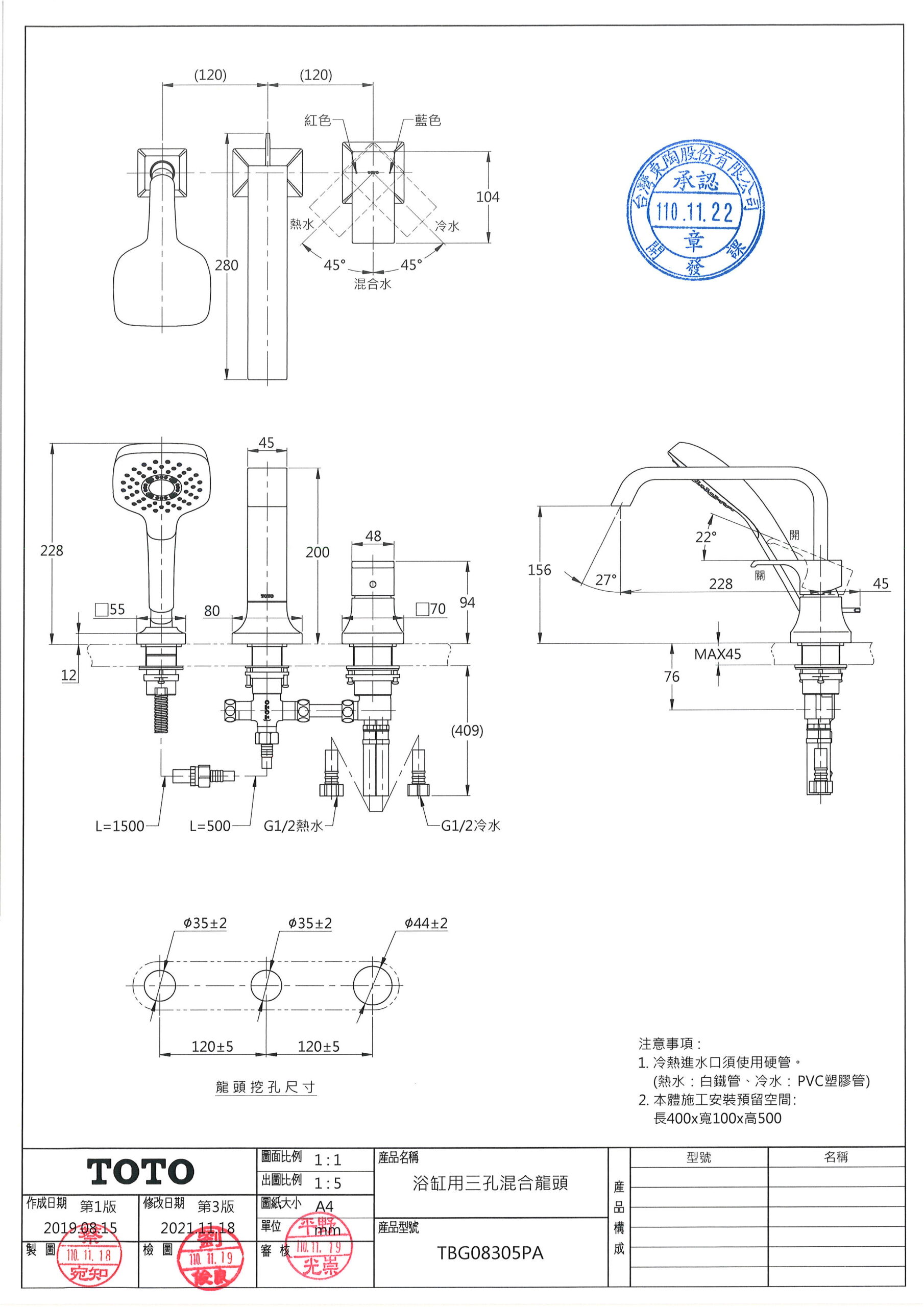 TOTO TBG08305PA 浴缸用三孔混合龍頭 數量