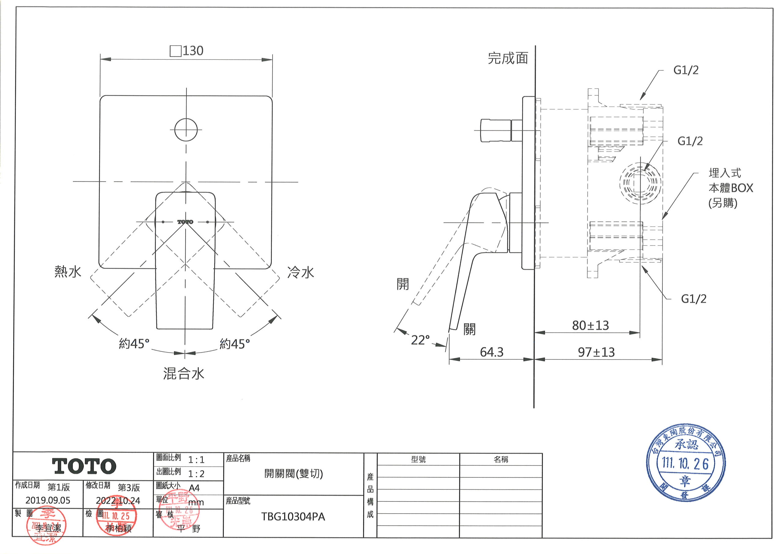 TOTO沐浴龍頭尺寸圖