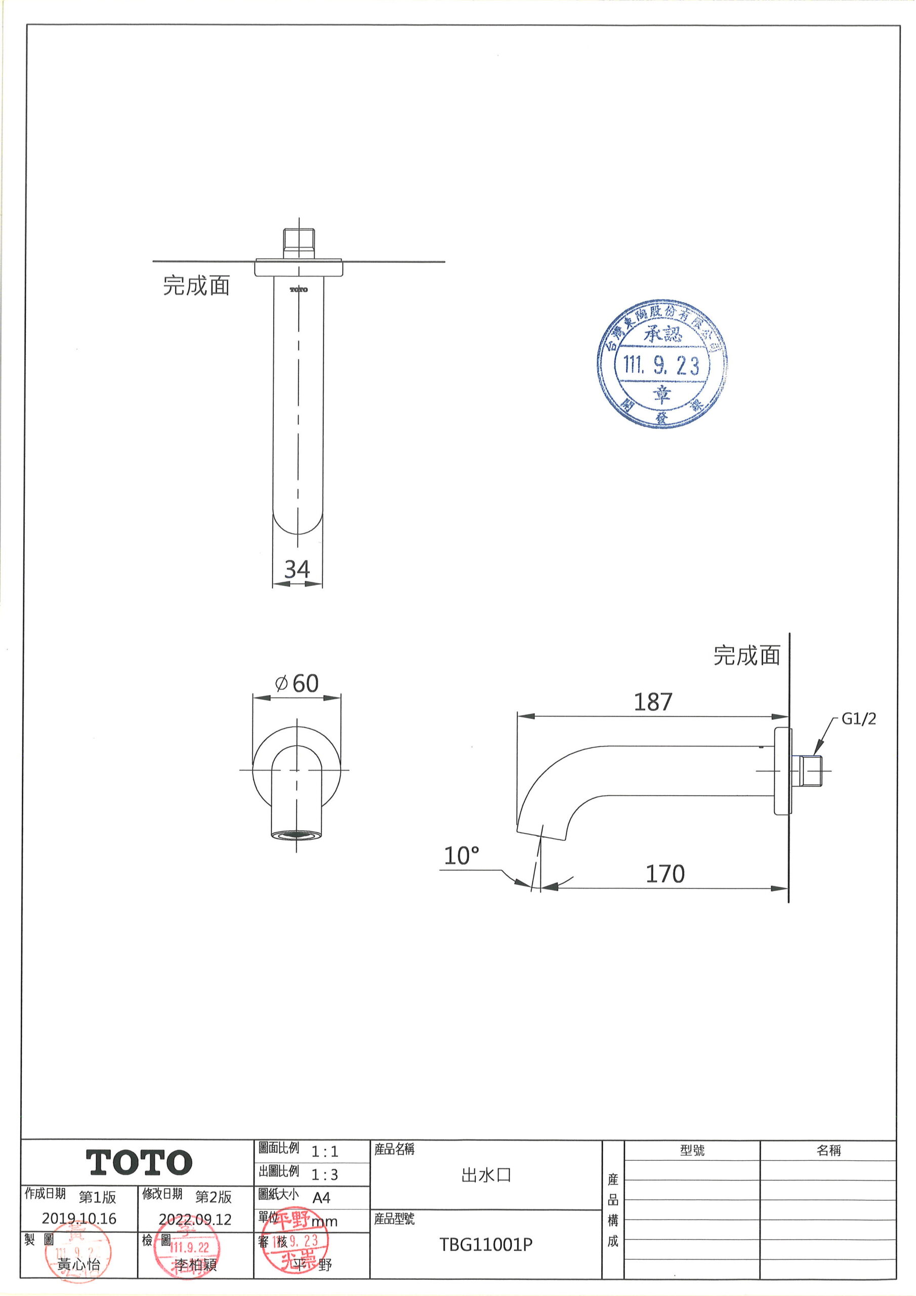 TOTO TBG11001P GF出水口