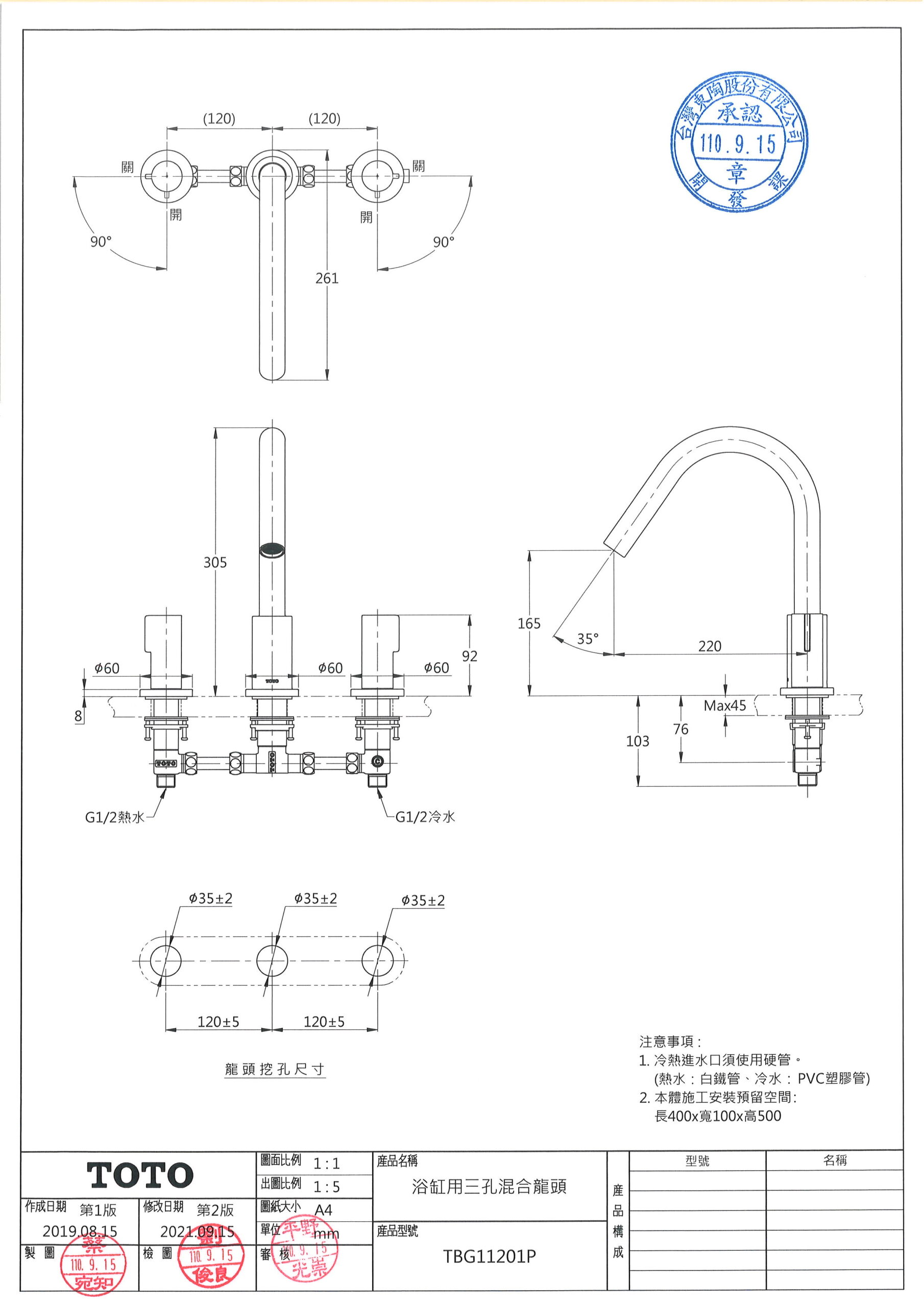 TOTO TBG11201P 浴缸用三孔混合龍頭 數量