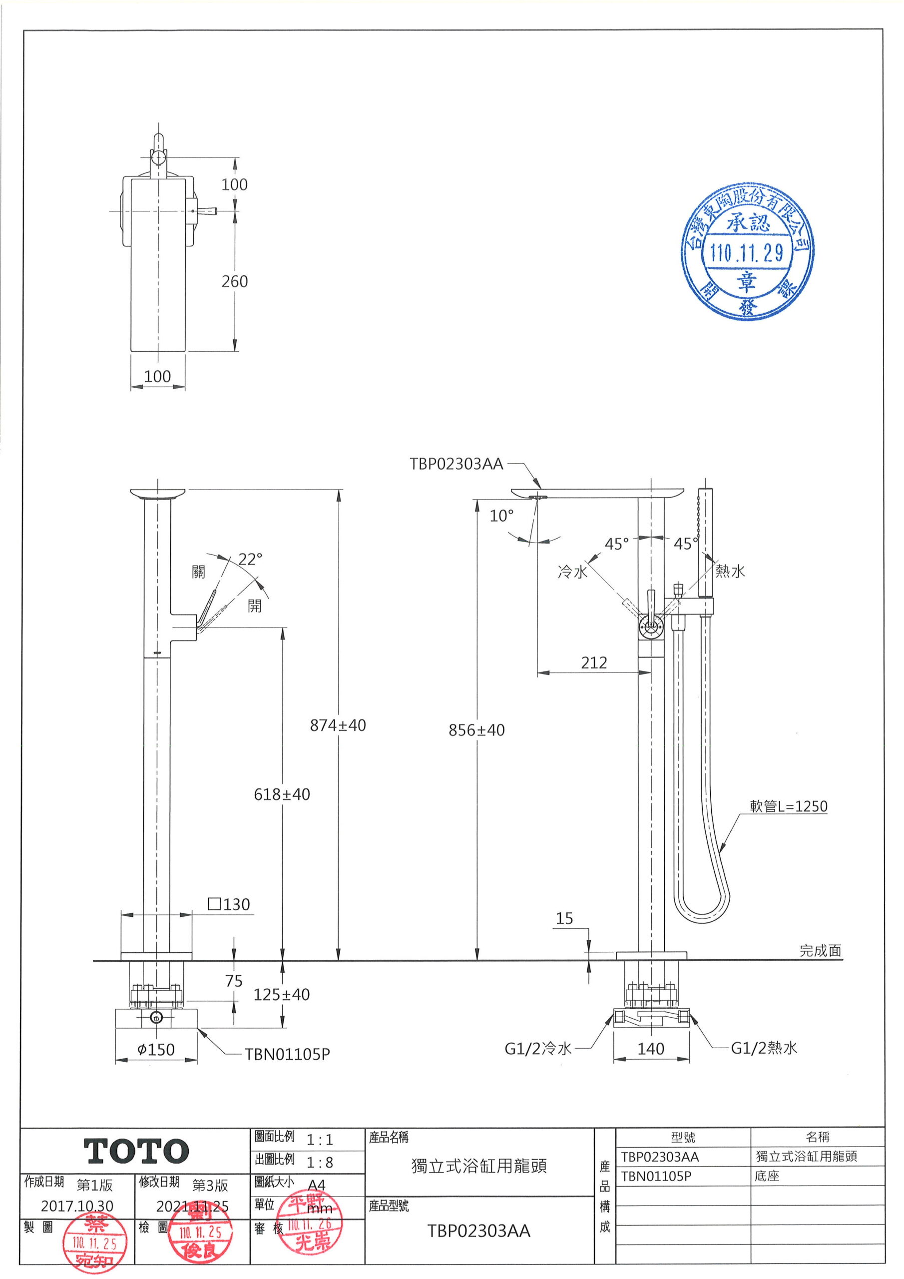 TOTO TBP02303AA 獨立式浴缸用龍頭