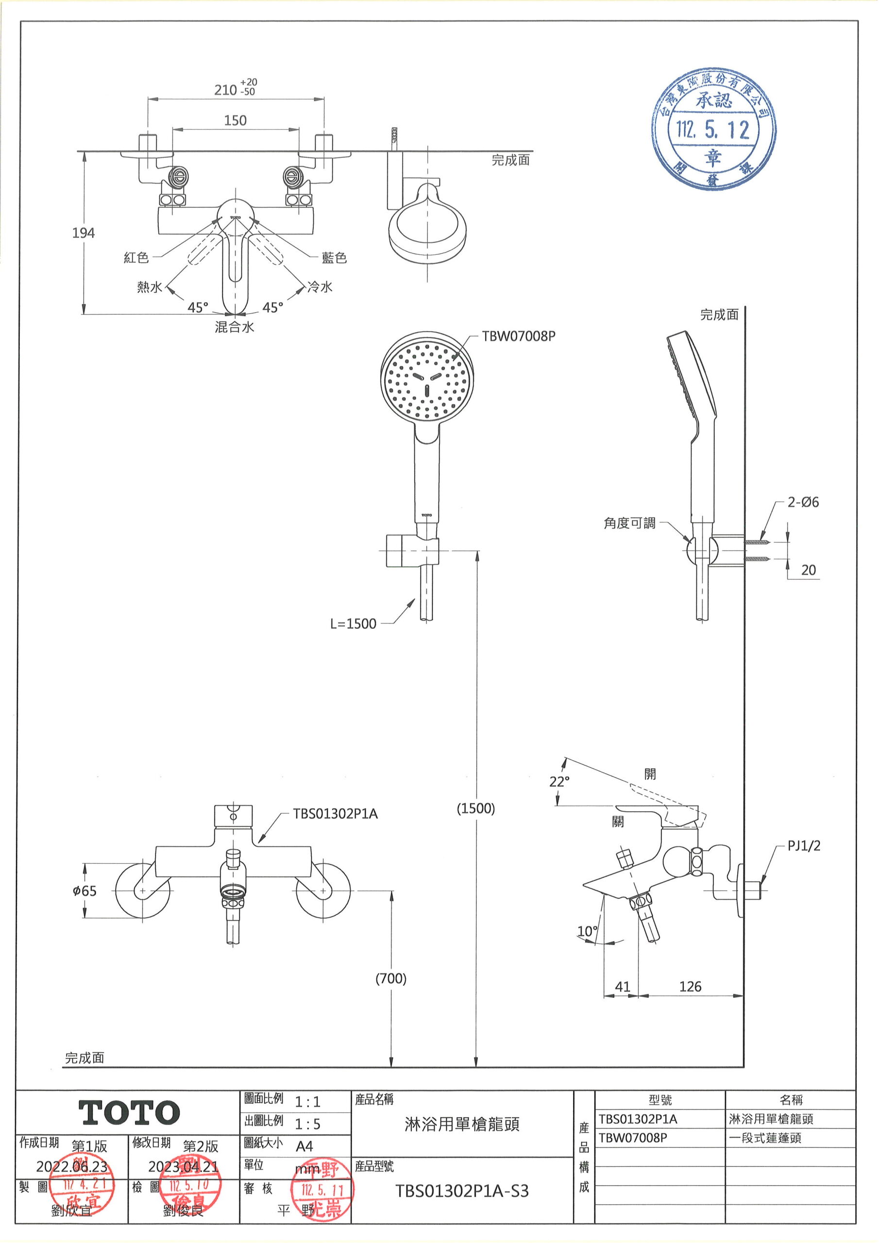 TOTO TBS01302P1A-S3 淋浴用單槍龍頭