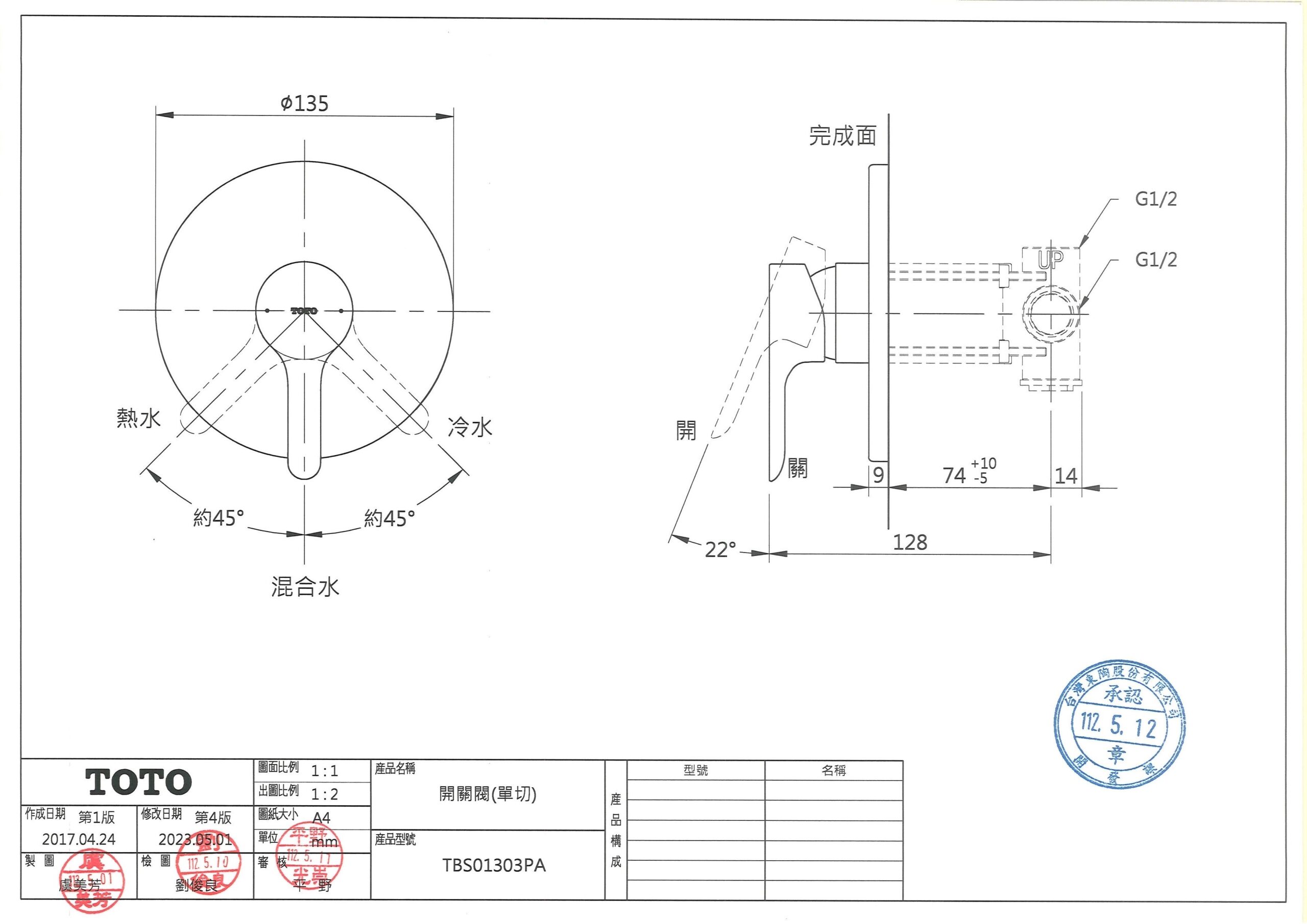 TOTO TBS01303PA LB開關閥(單切) 數量