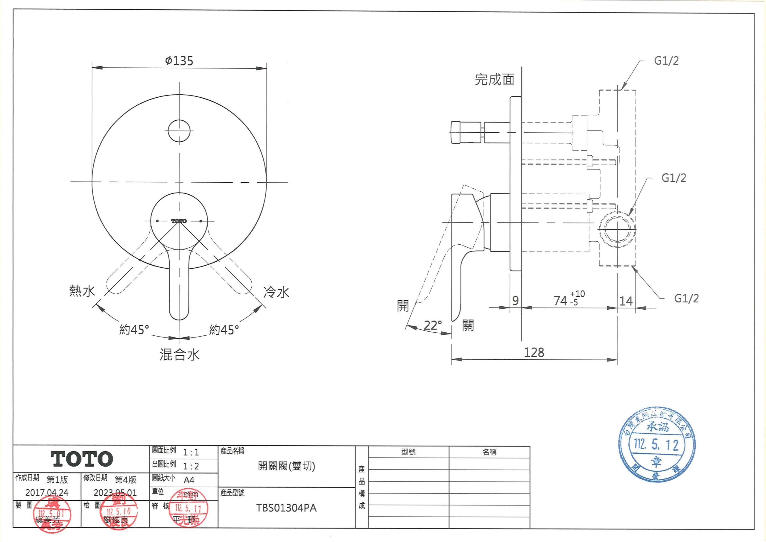 TOTO TBS01304PA LB開關閥(雙切) 數量