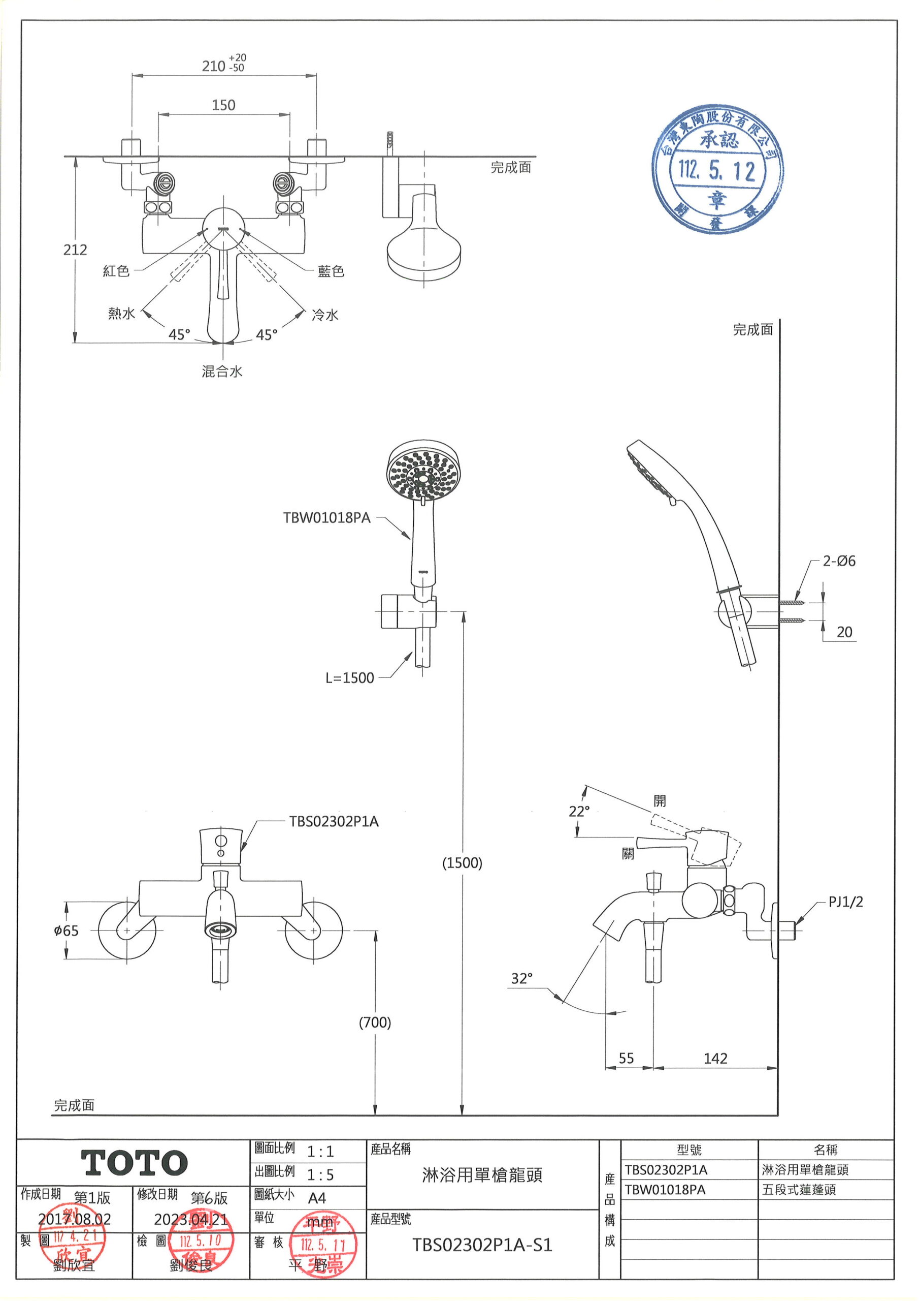 TOTO TBS02302P1A-S1 淋浴用單槍龍頭 數量