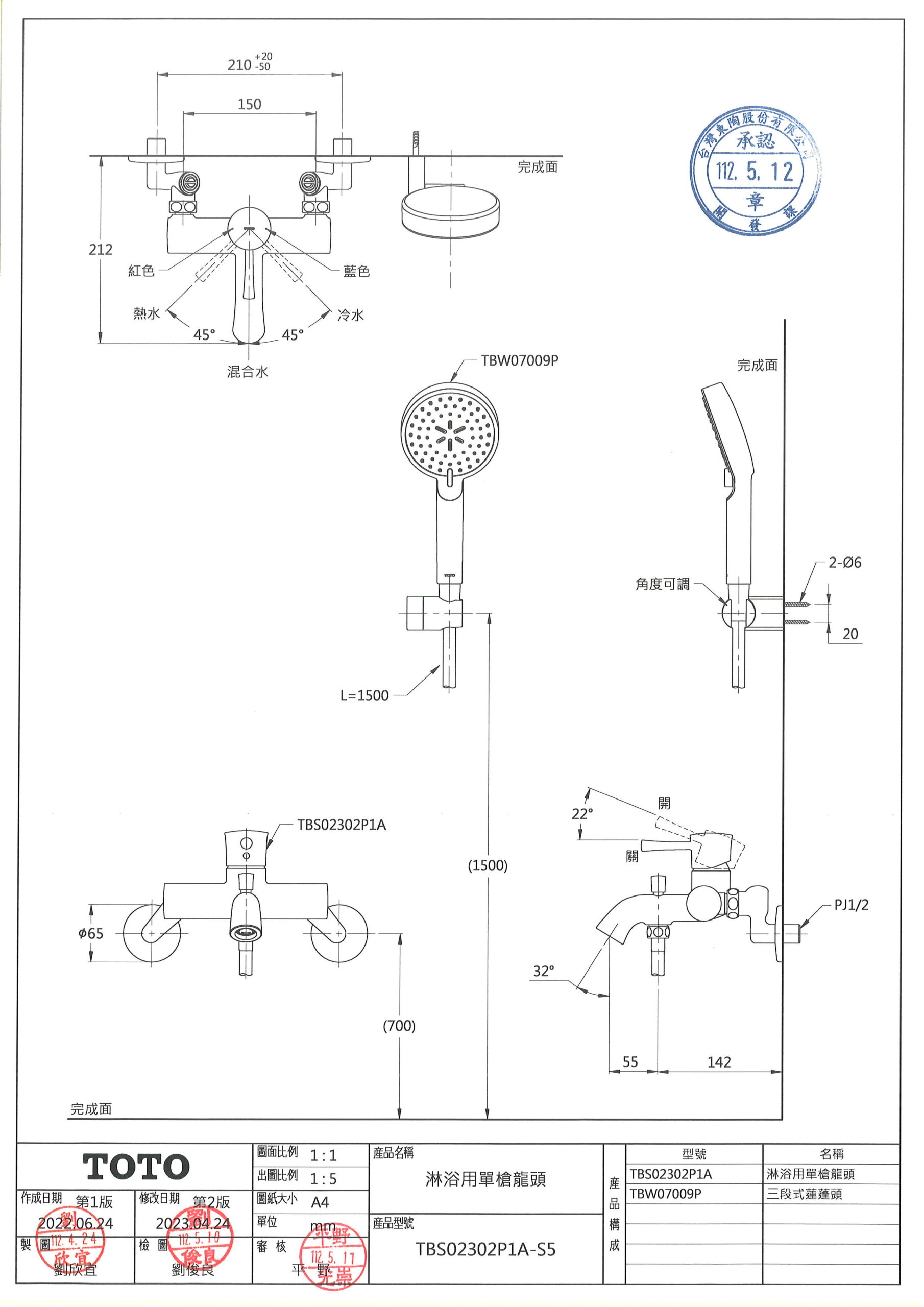 TOTO TBS02302P1A-S5 淋浴用單槍龍頭