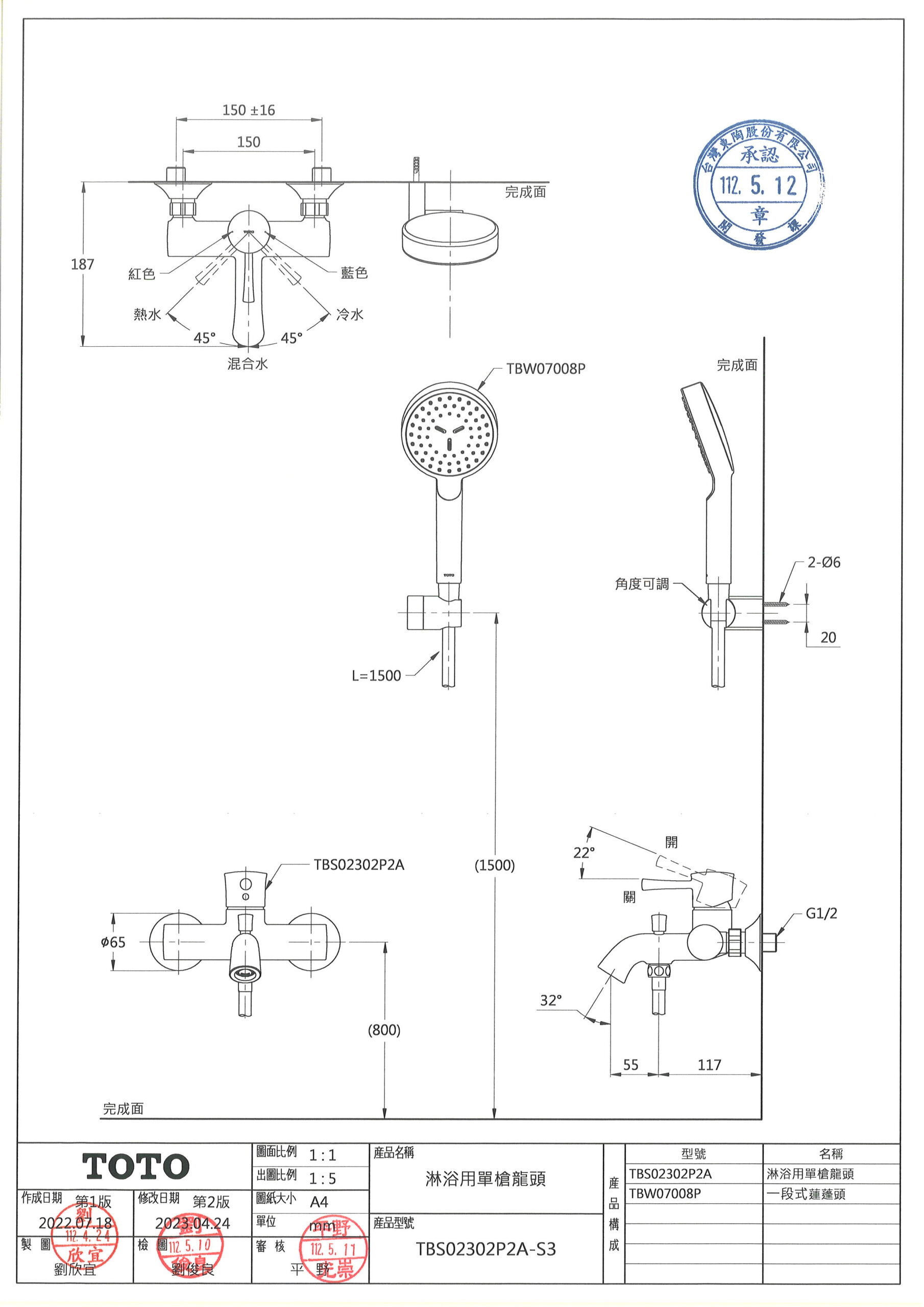 TOTO TBS02302P2A-S3 淋浴用單槍龍頭 數量