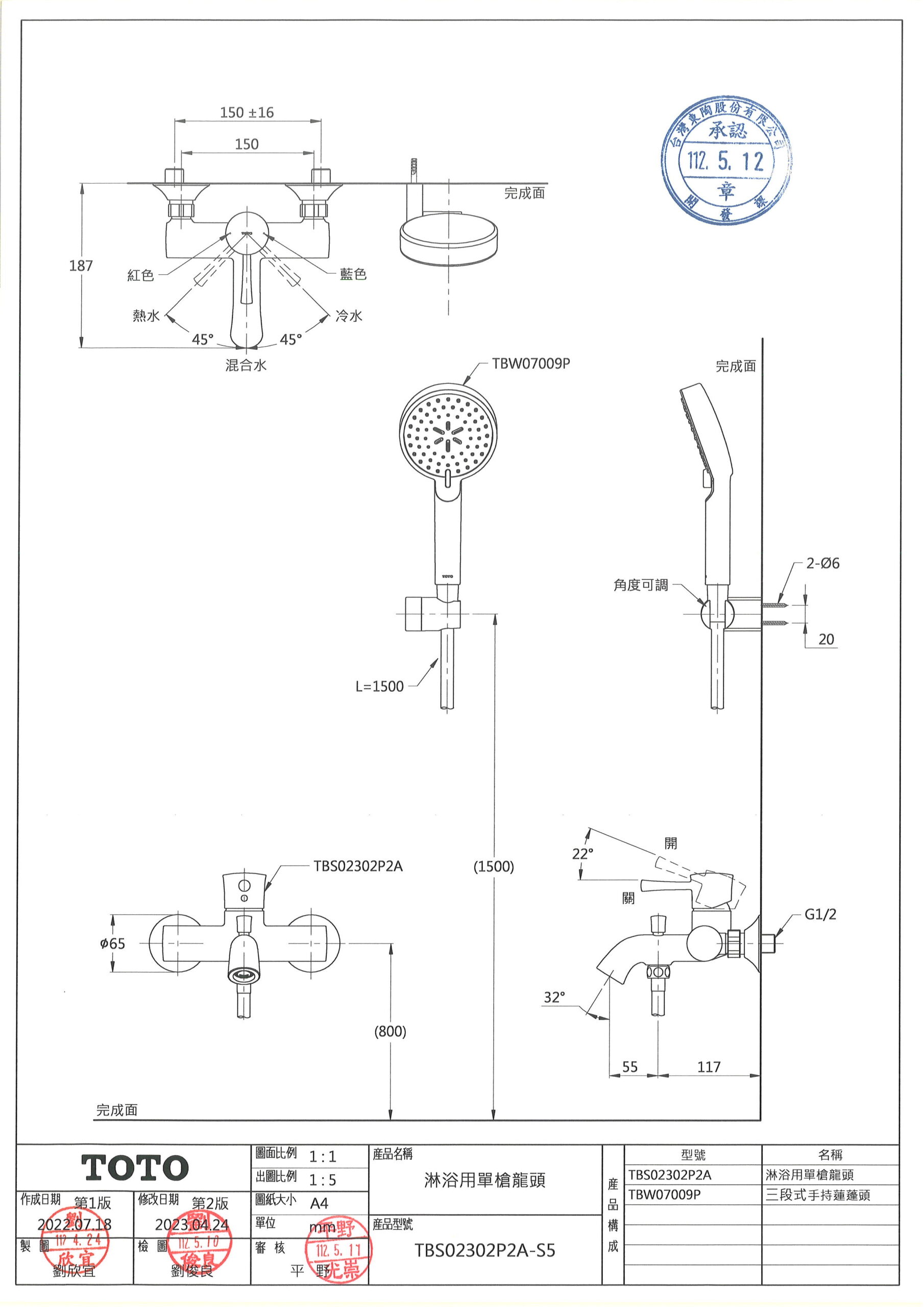 TOTO TBS02302P2A-S5 淋浴用單槍龍頭