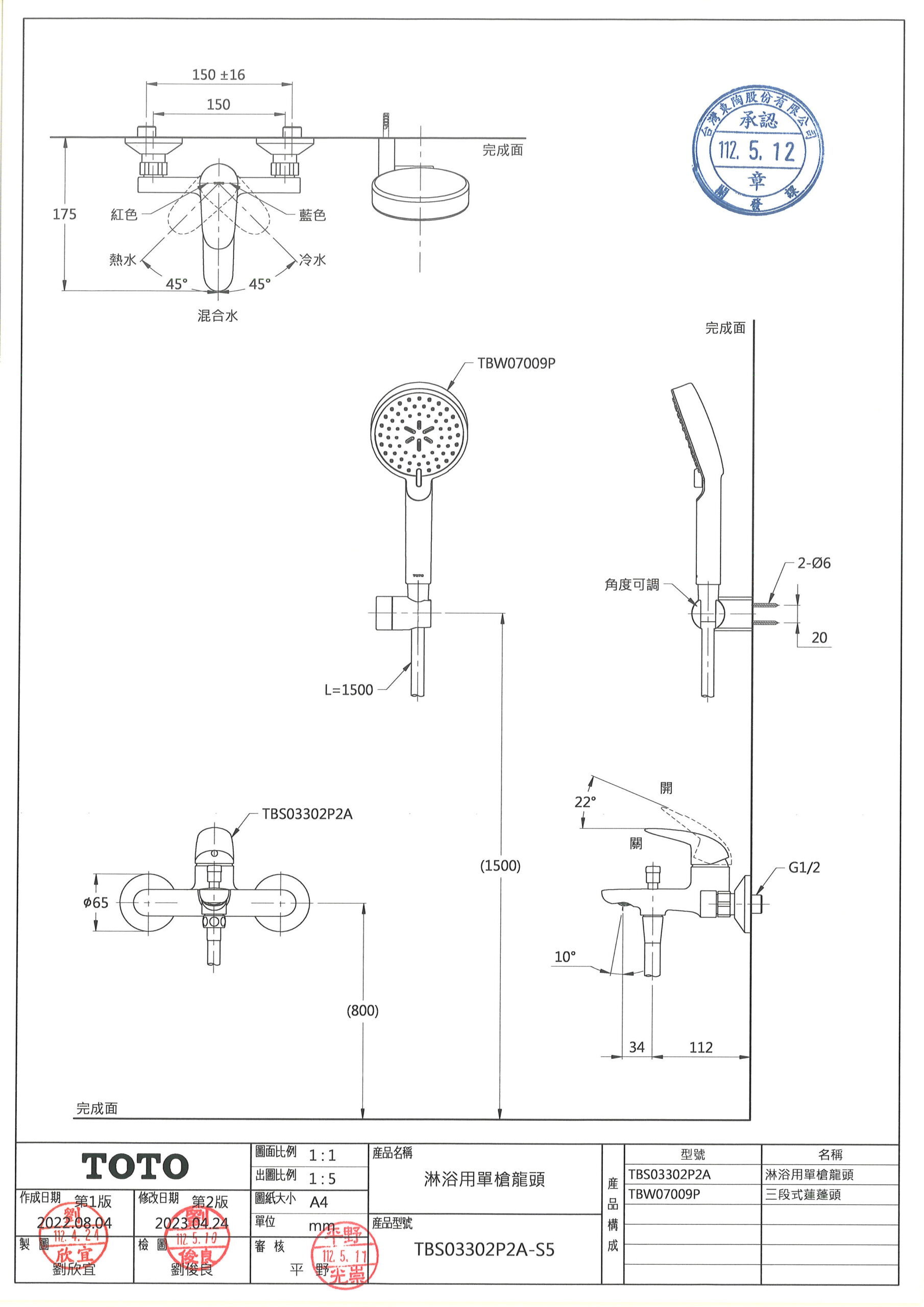 TOTO TBS03302P2A-S5 淋浴用單槍龍頭 數量
