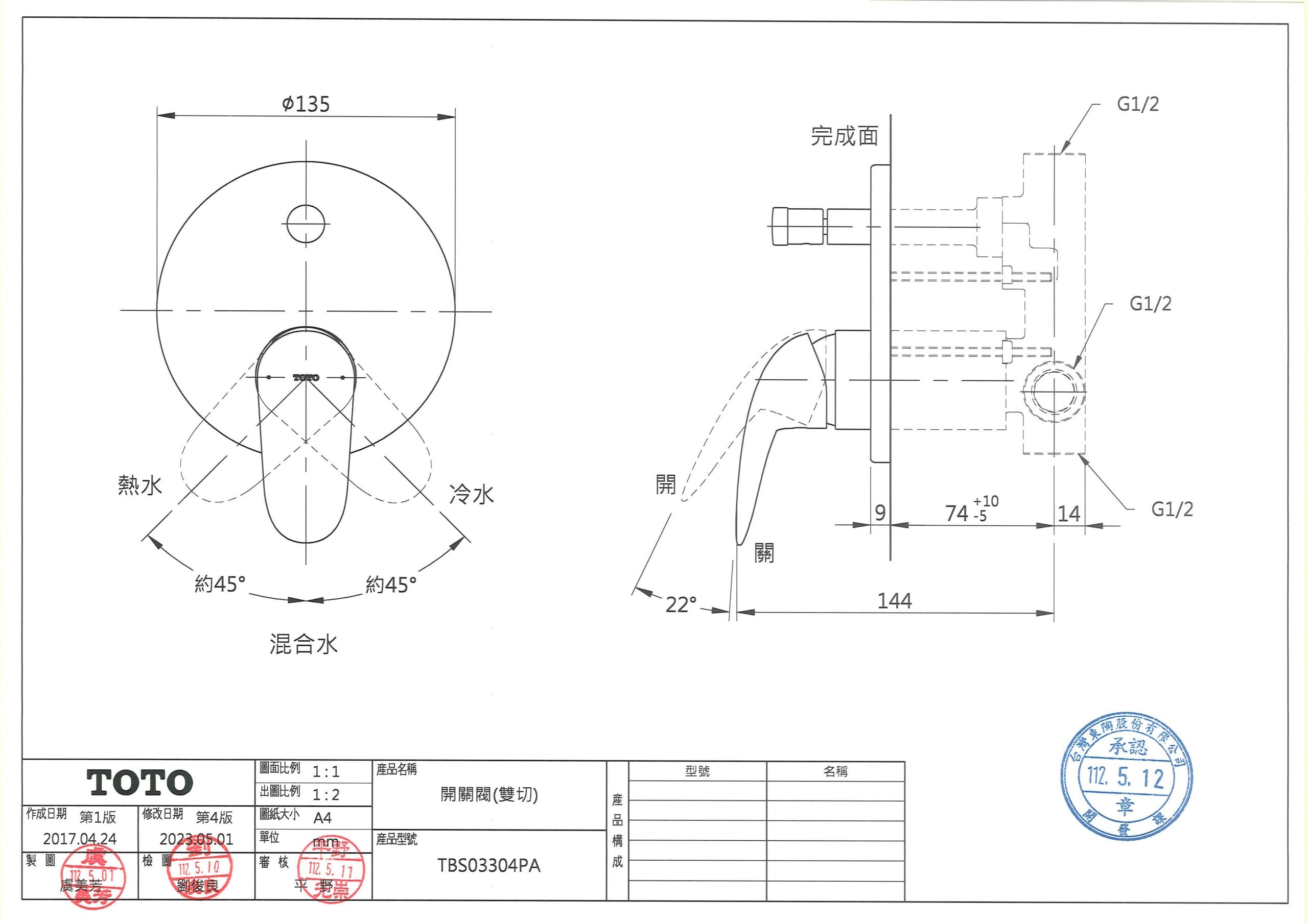 TOTO TBS03304PA LC開關閥(雙切)
