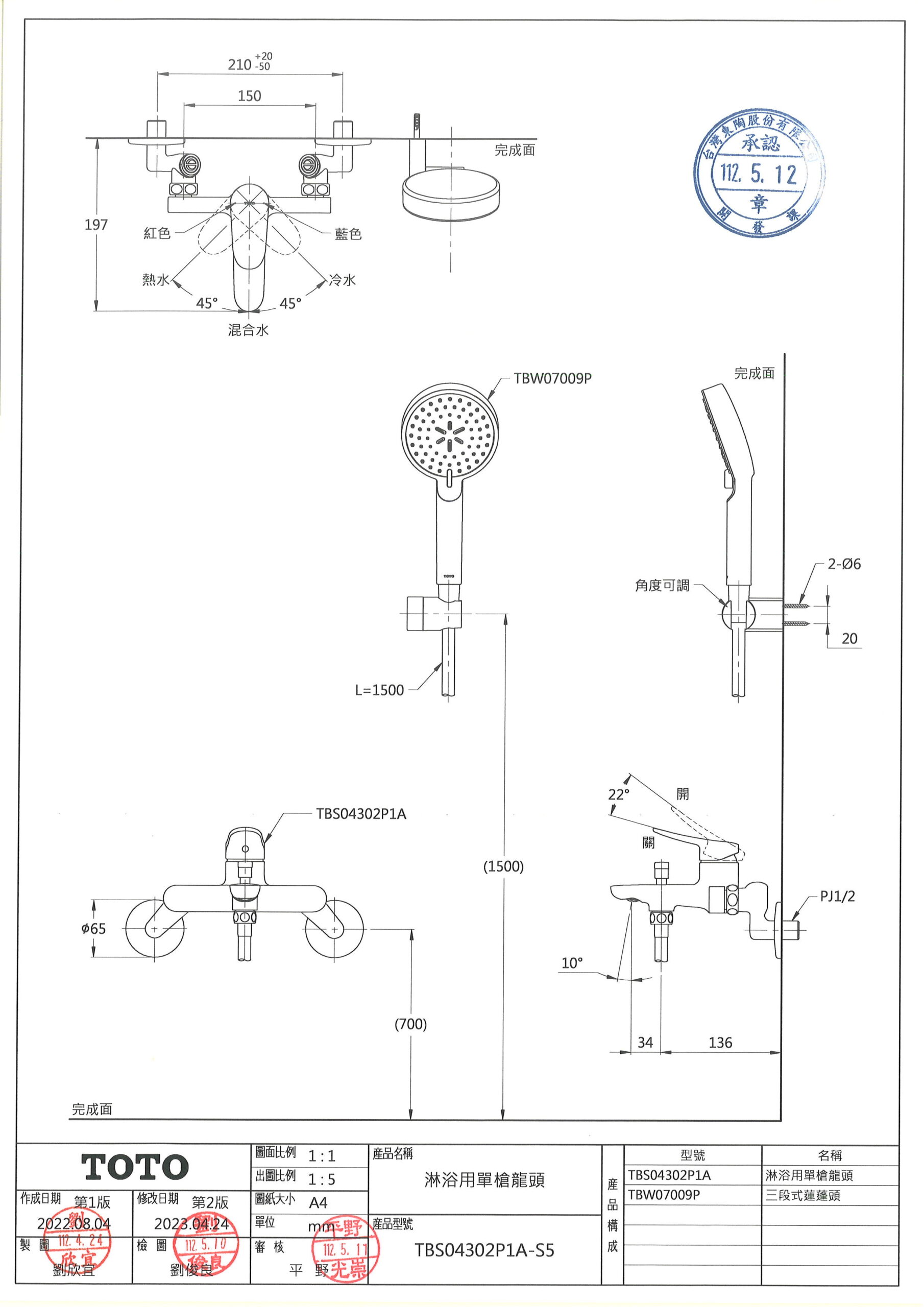 TOTO沐浴龍頭尺寸圖