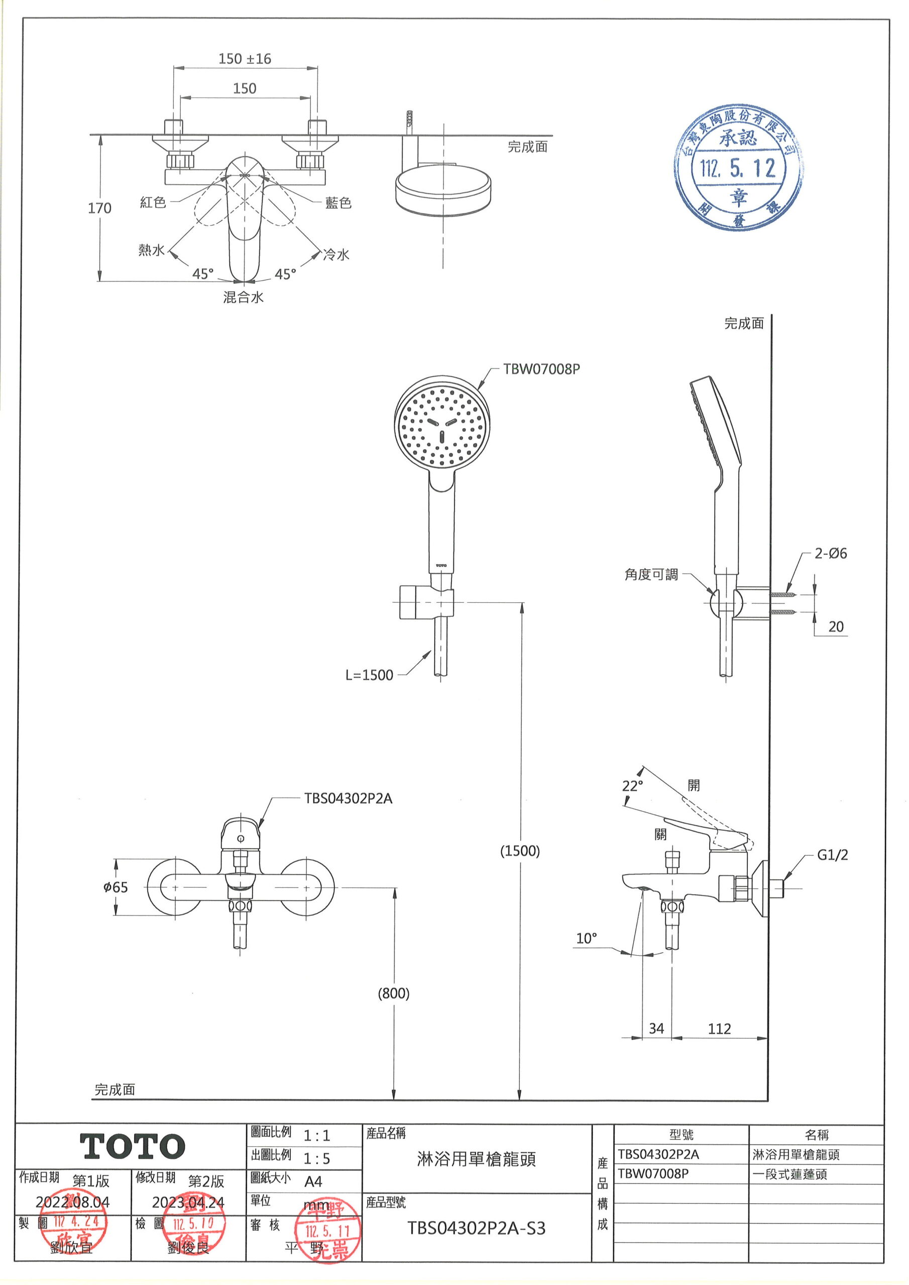 TOTO TBS04302P2A-S3 淋浴用單槍龍頭