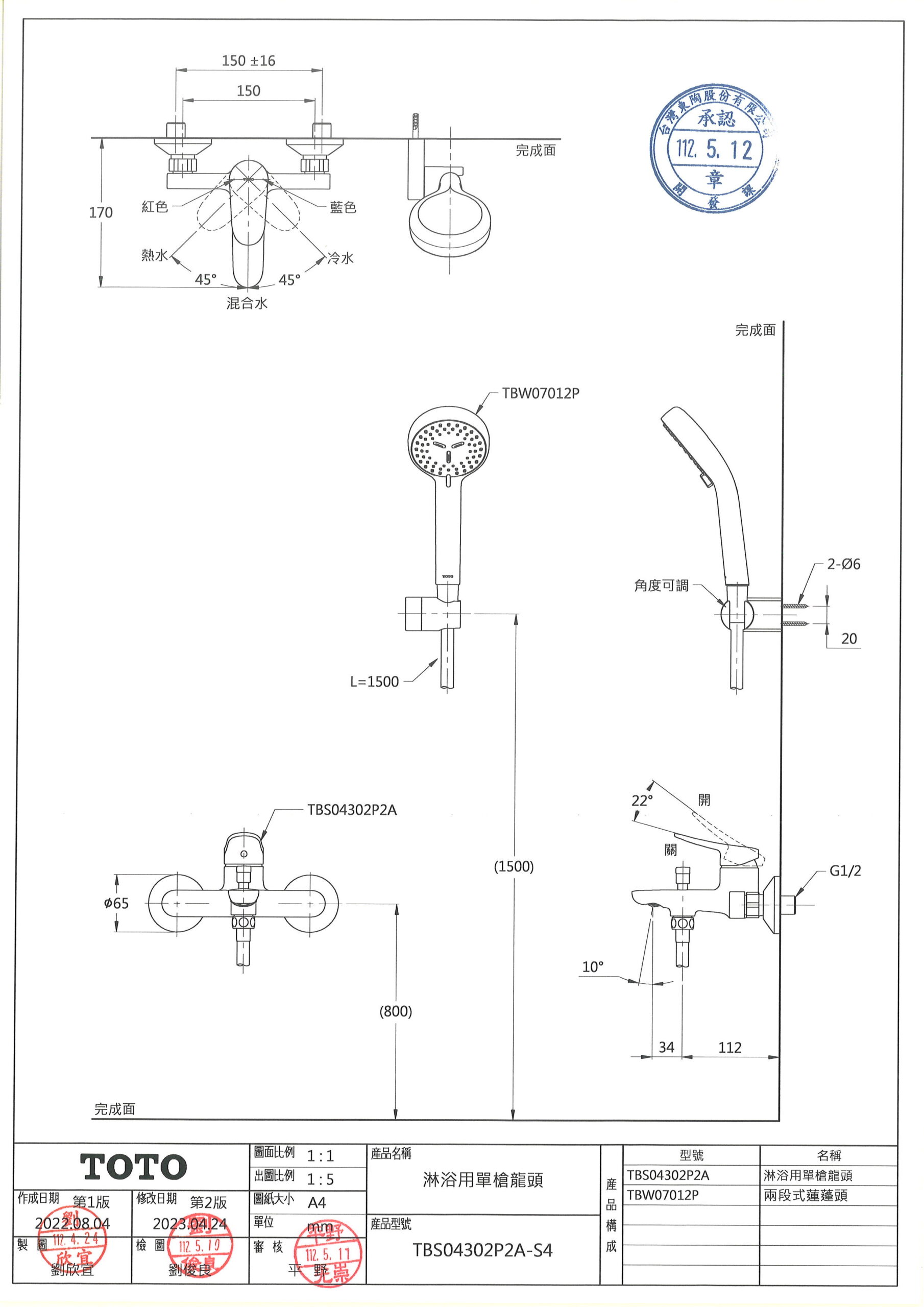 TOTO TBS04302P2A-S4 淋浴用單槍龍頭 數量