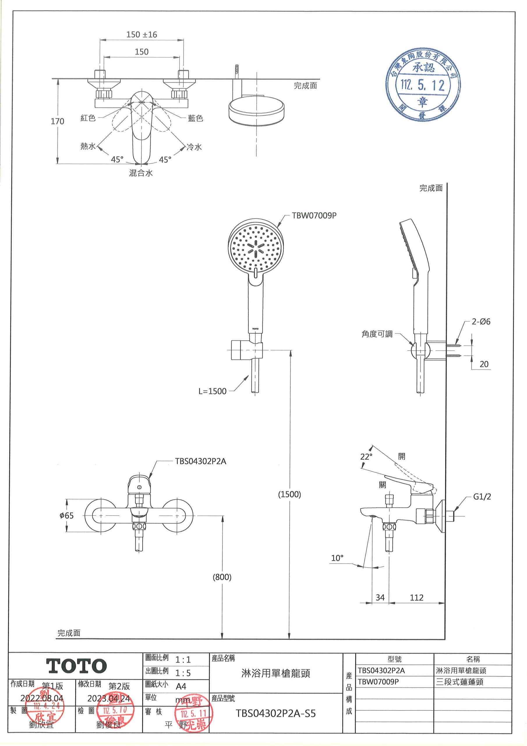 TOTO TBS04302P2A-S5 淋浴用單槍龍頭 數量