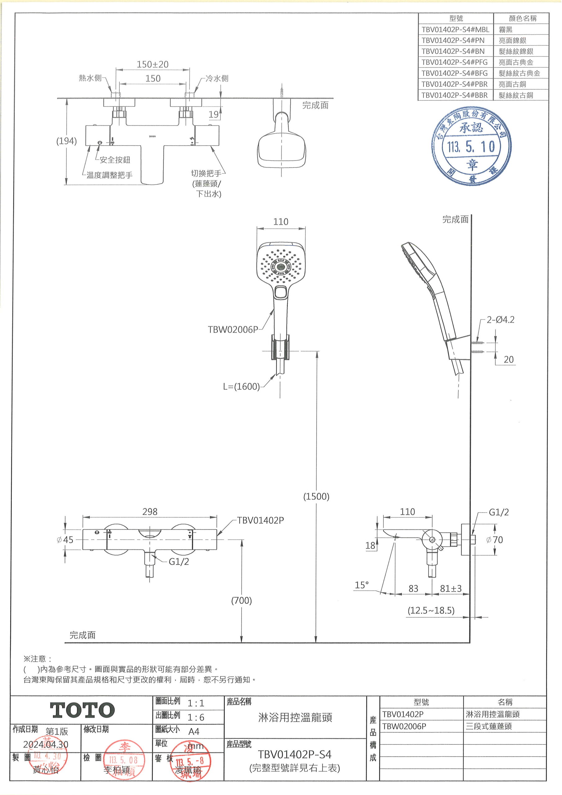 TOTO TBV01402P-S4 淋浴用控溫龍頭