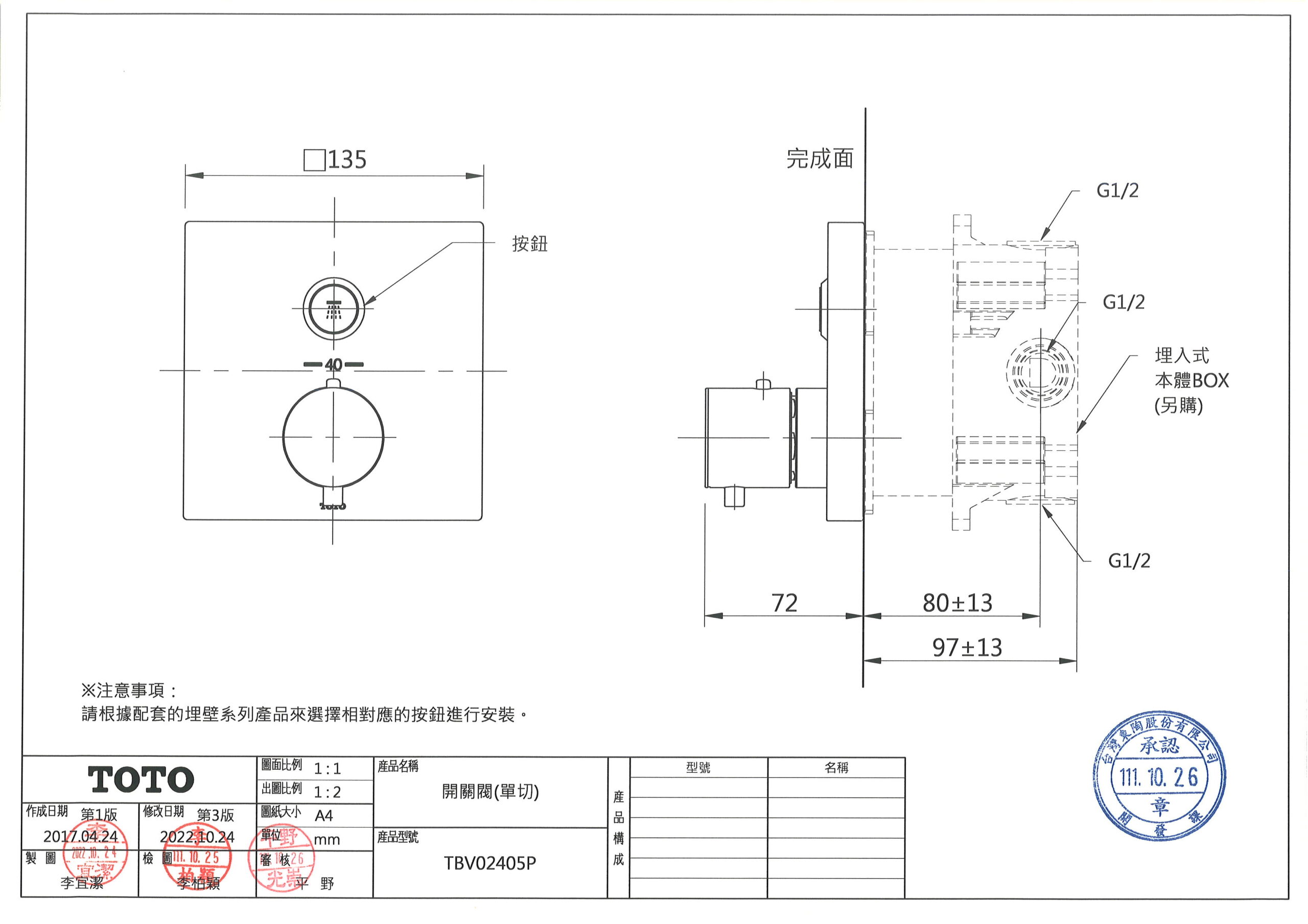 通用埋壁盒 TBN01001P
