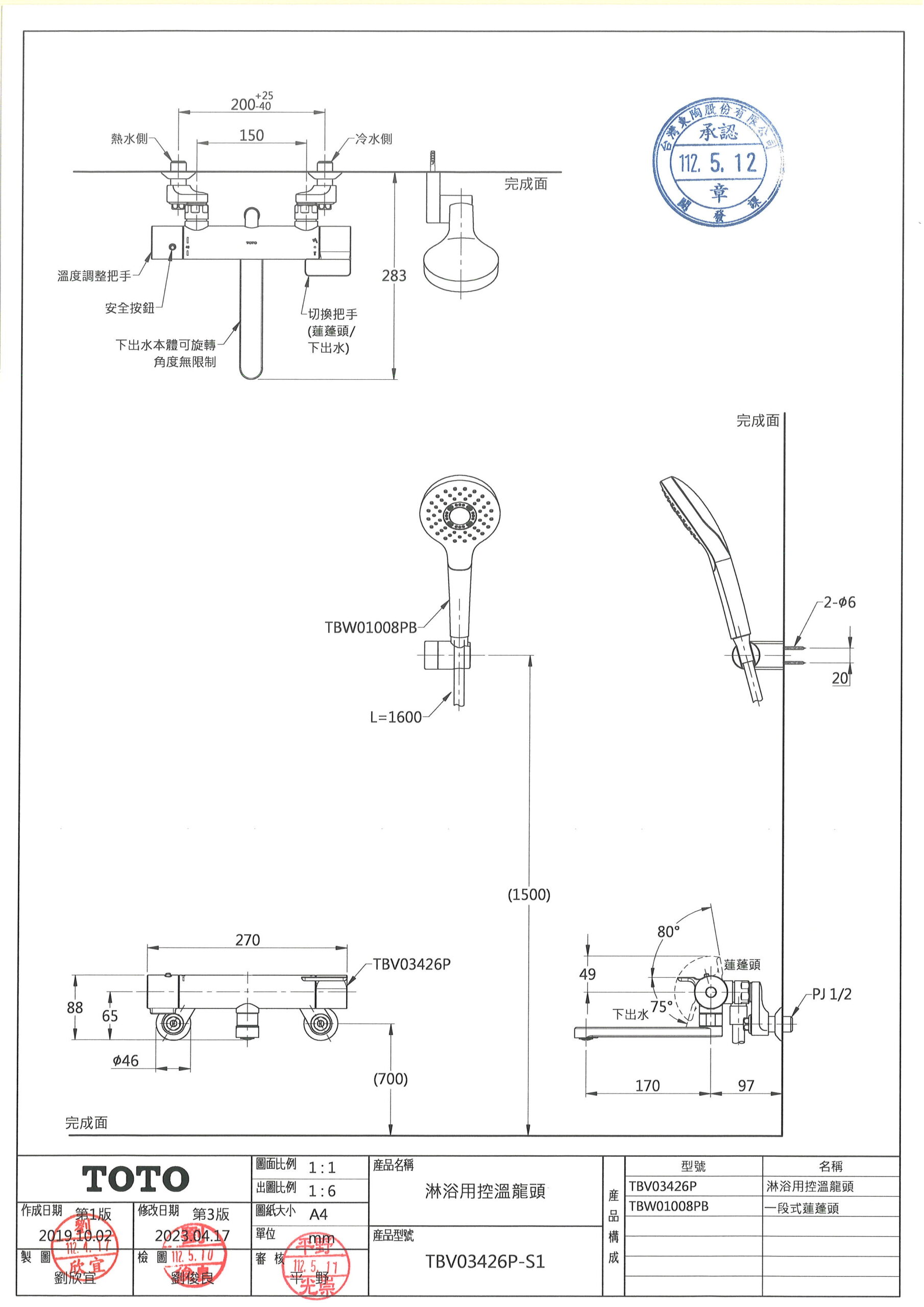 TOTO 沐浴龍頭 TBV03426P-S2 尺寸圖