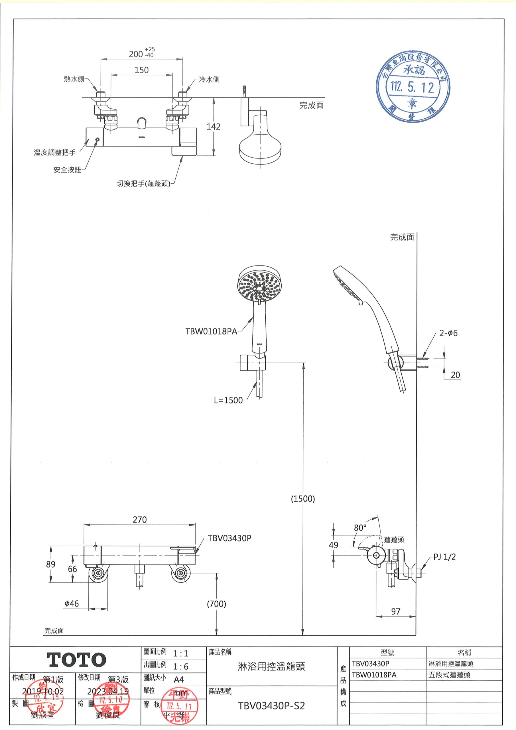 TOTO TBV03430P-S2 淋浴用控溫龍頭