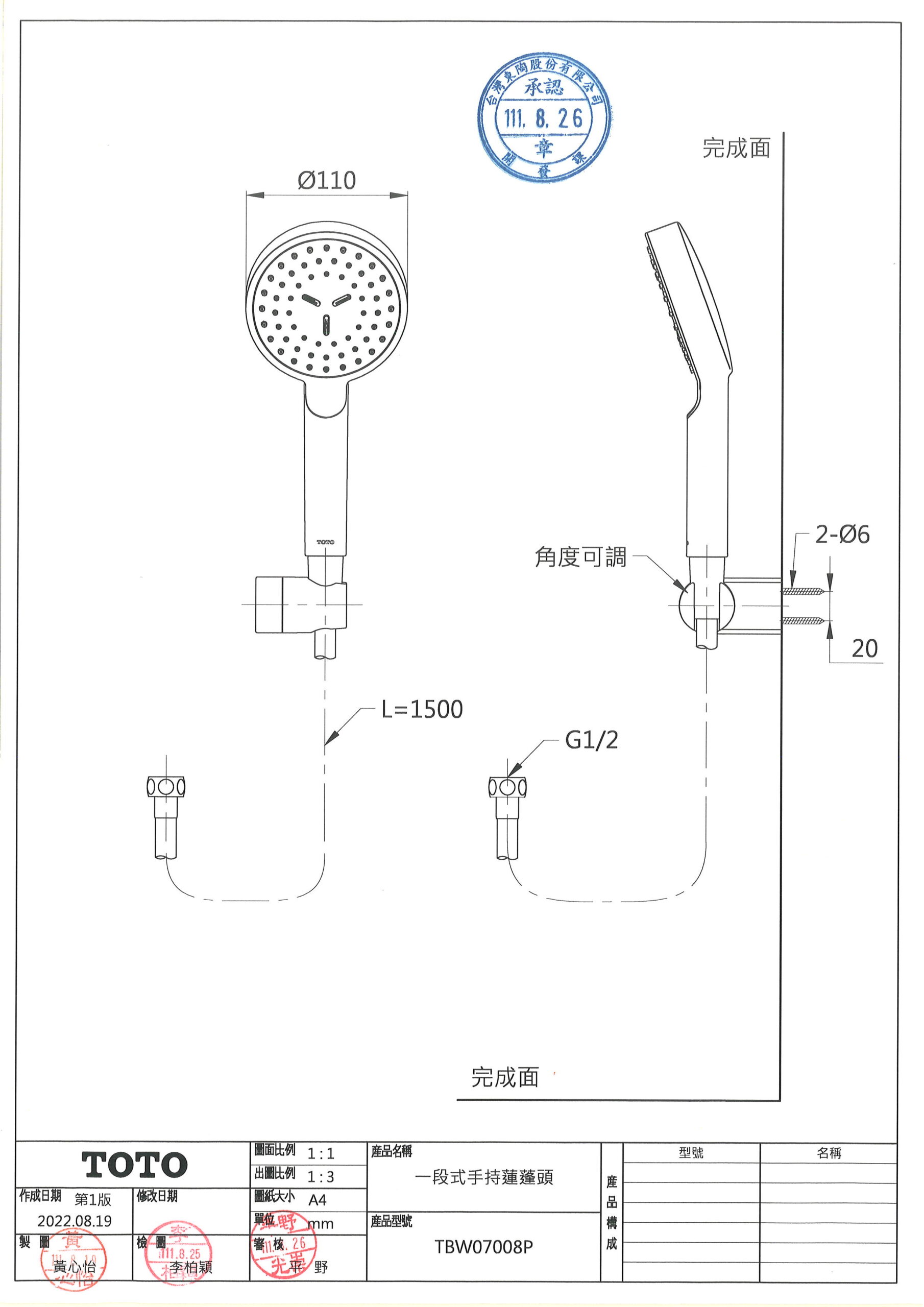 TOTO TBW07008P 一段式蓮蓬頭 數量