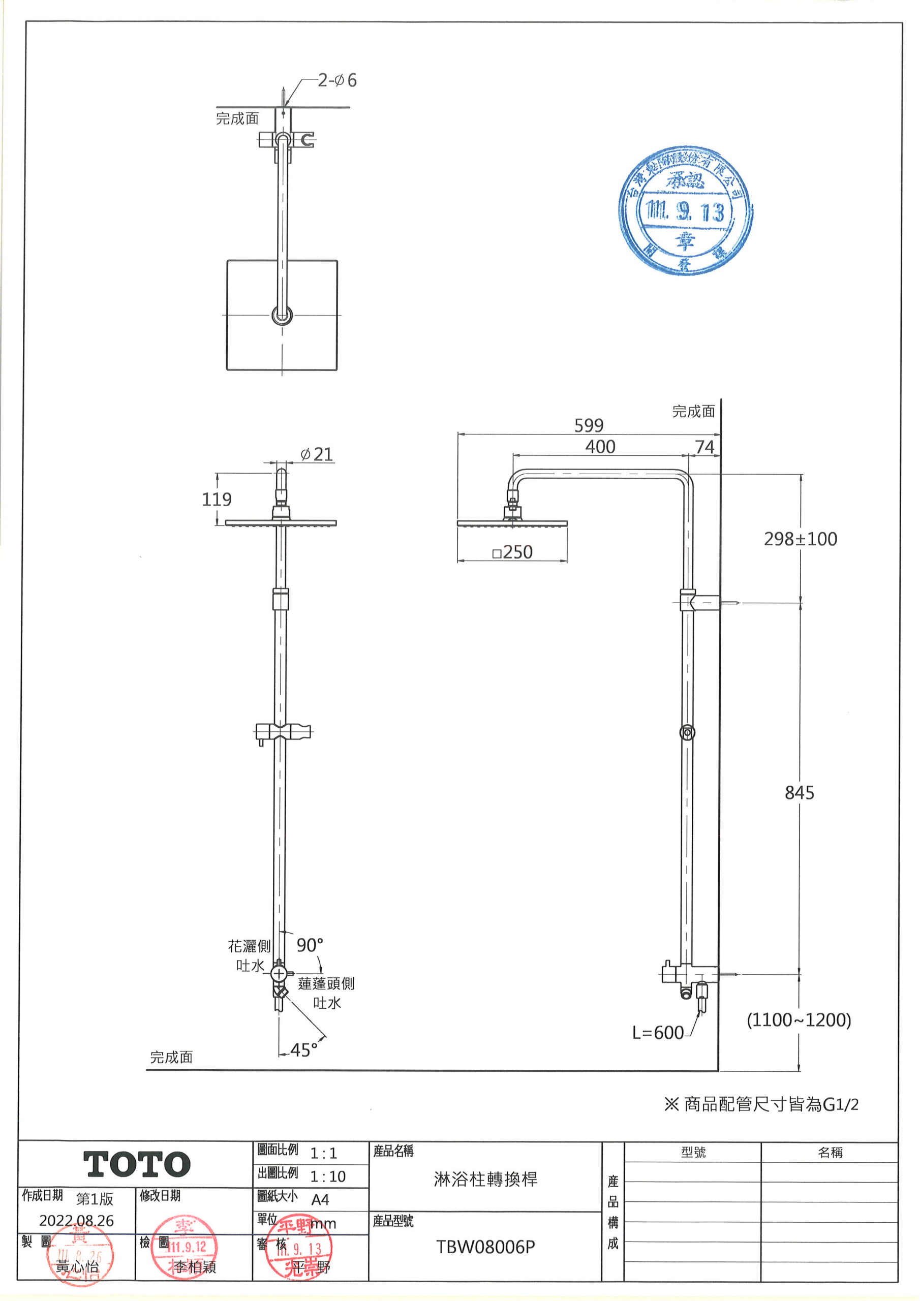 TOTO TBW08006P 淋浴柱轉換桿 數量