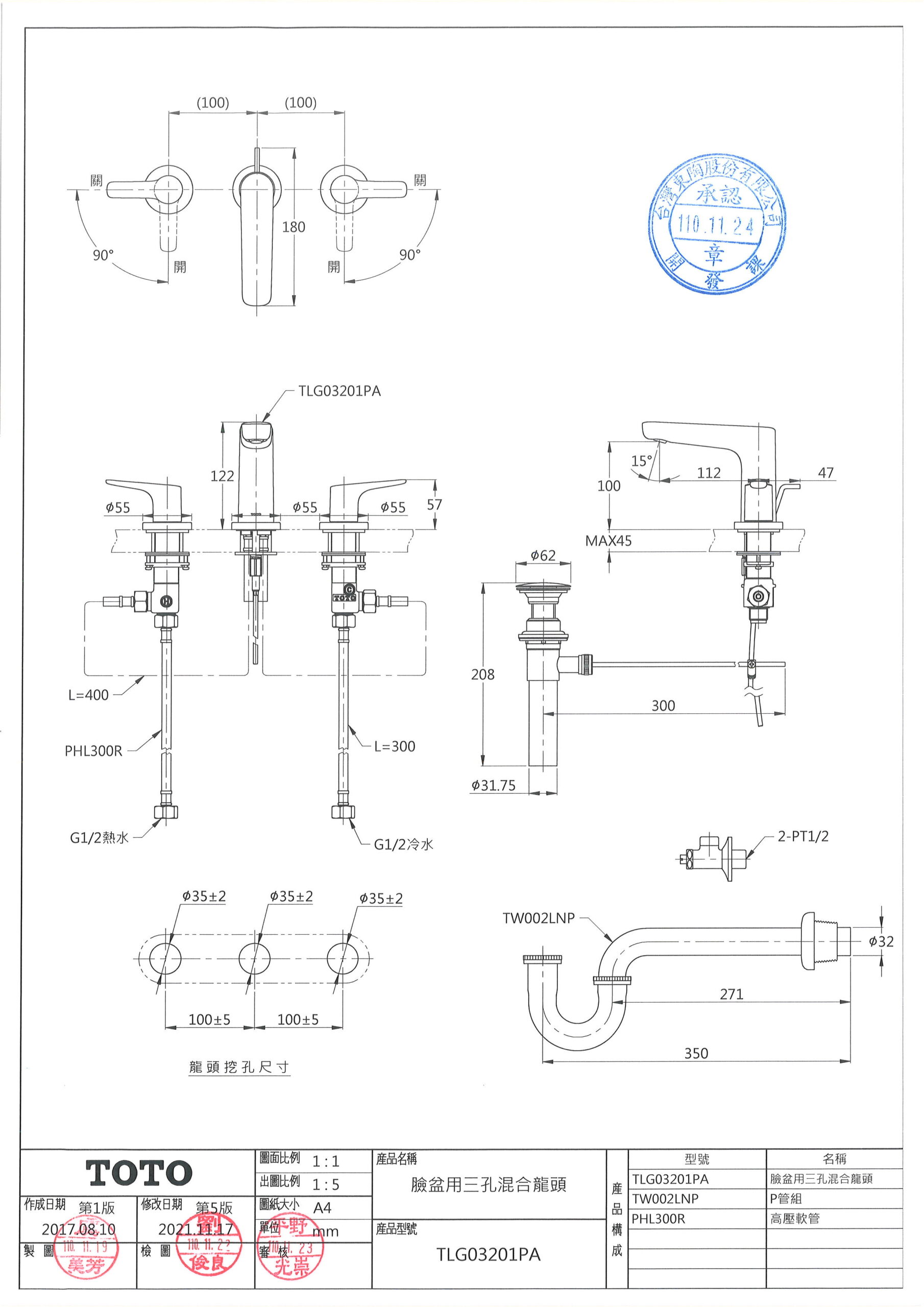 TOTO TLG03201PA 臉盆用三孔混合龍頭) 數量