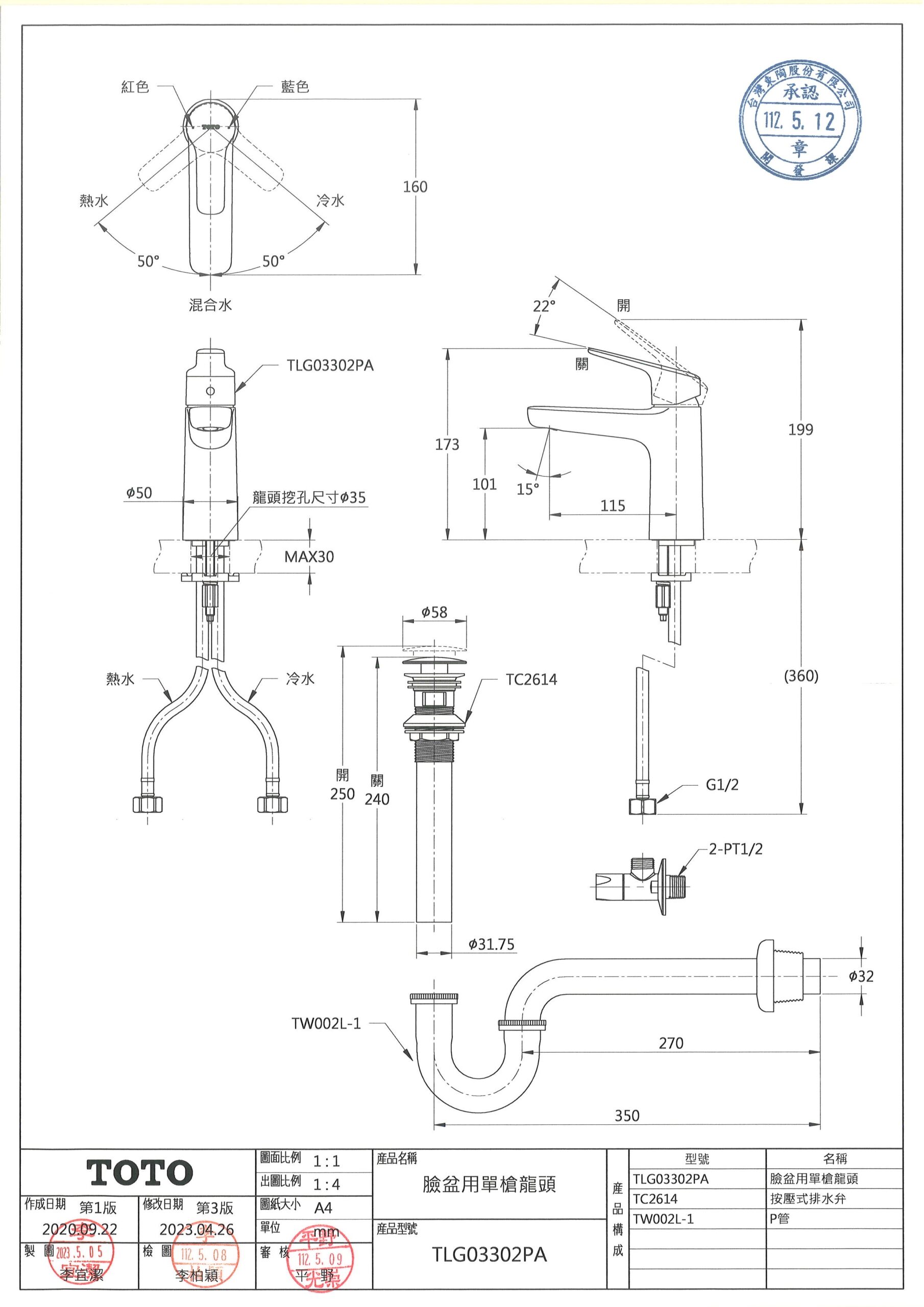 TOTO TLG03302PA 臉盆用單槍龍頭 (短) 數量