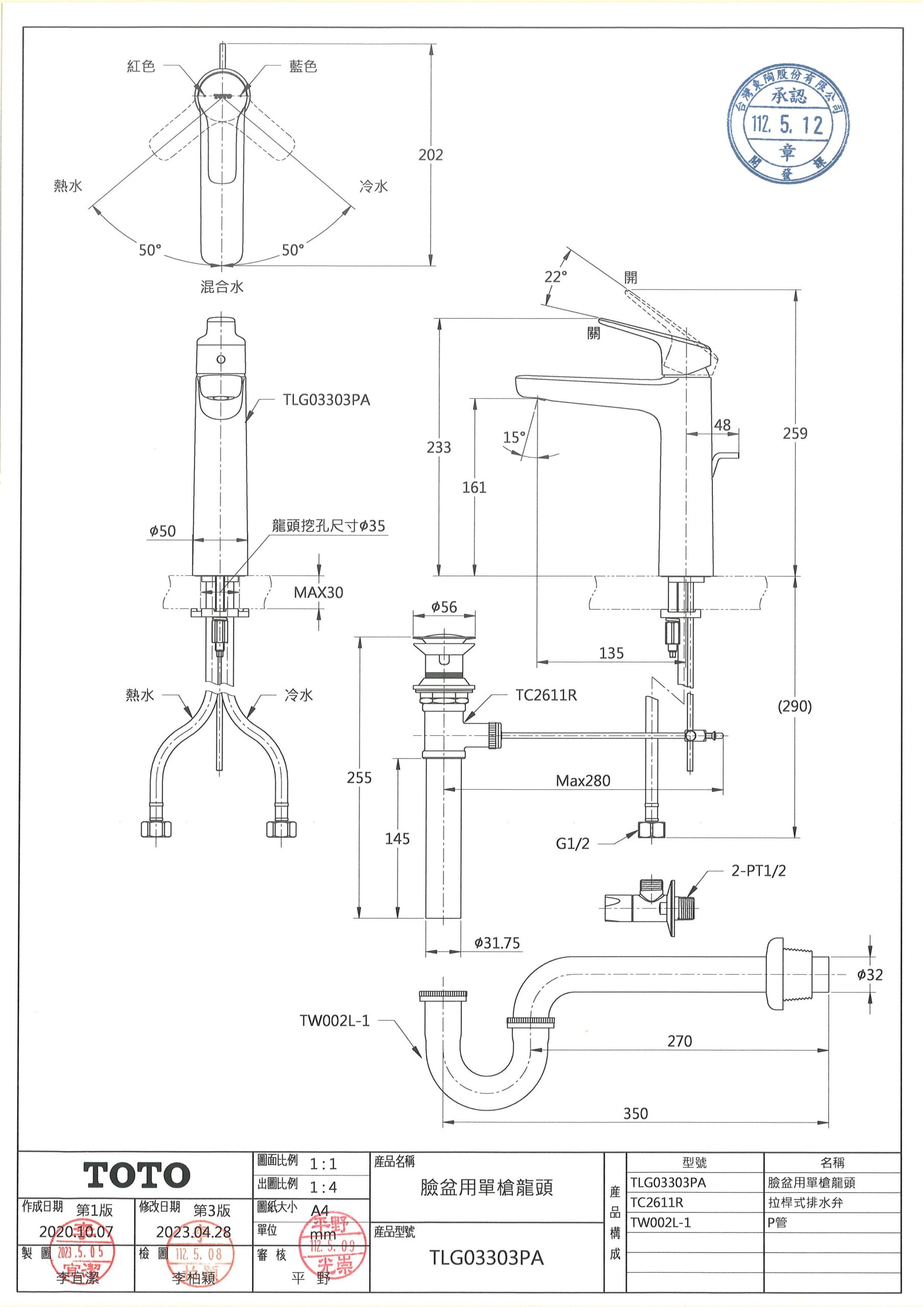 TOTO面盆龍頭尺寸圖