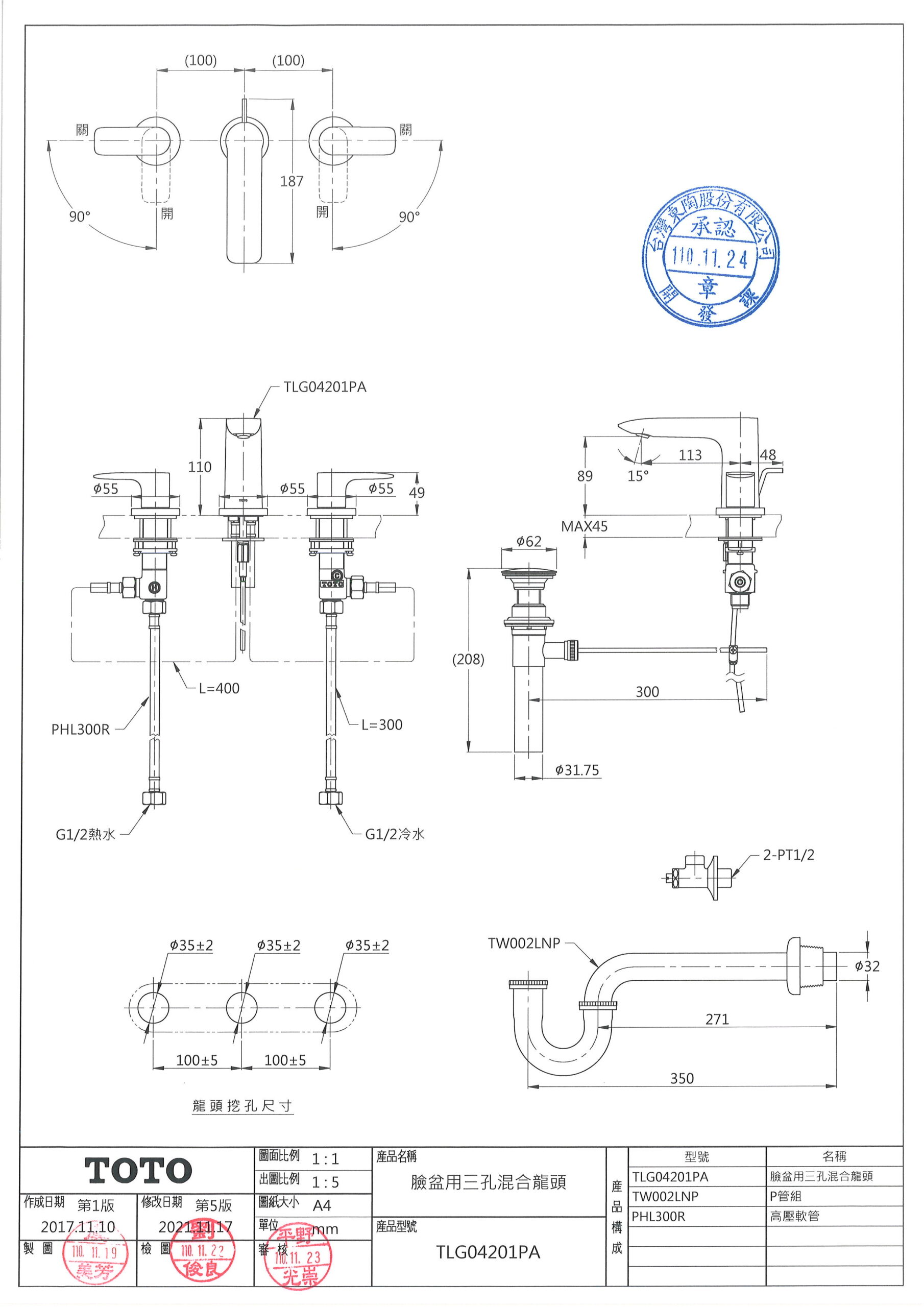 TOTO TLG04201PA 臉盆用三孔混合龍頭