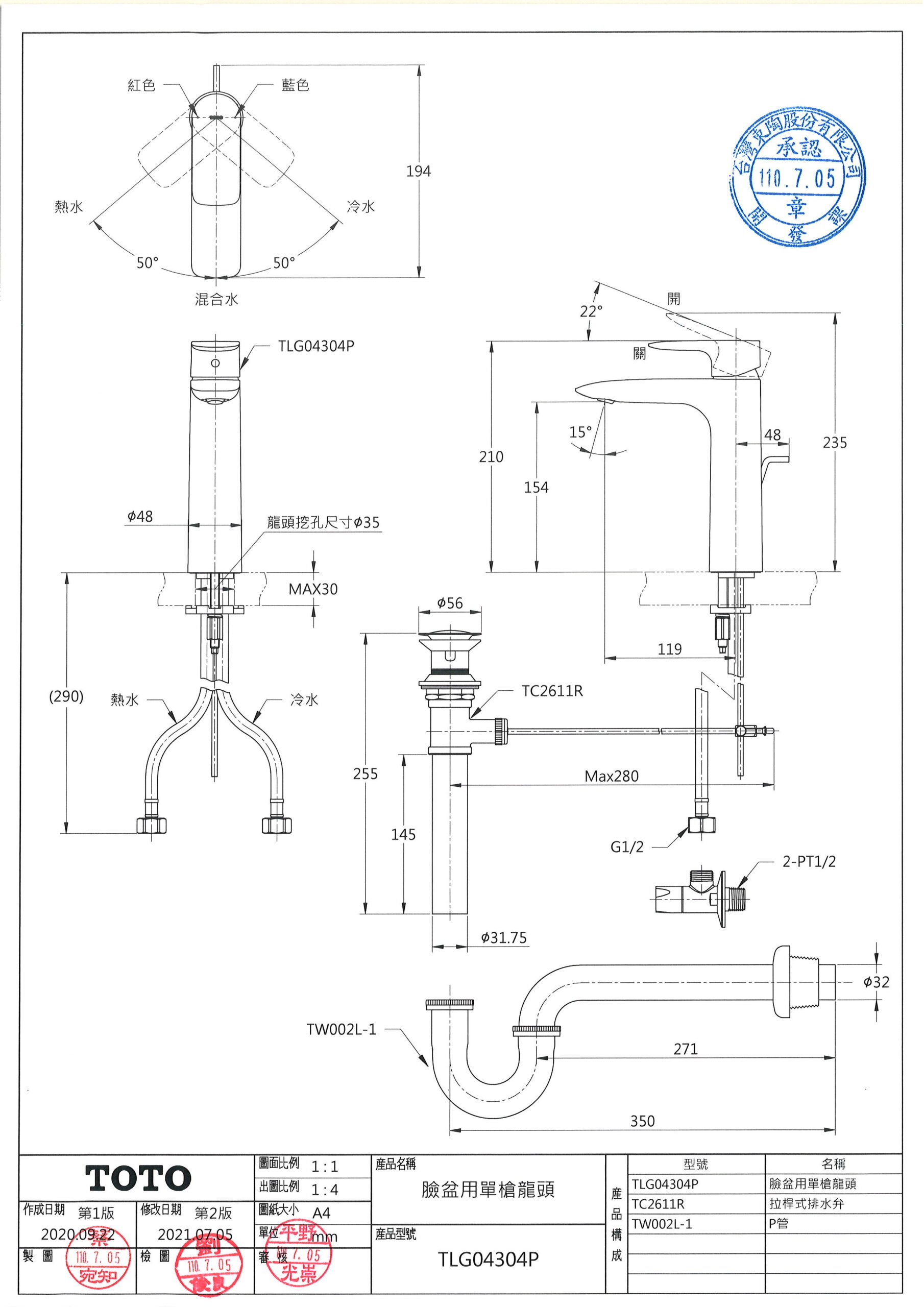 TOTO TLG04304P 臉盆用單槍龍頭 (中)
