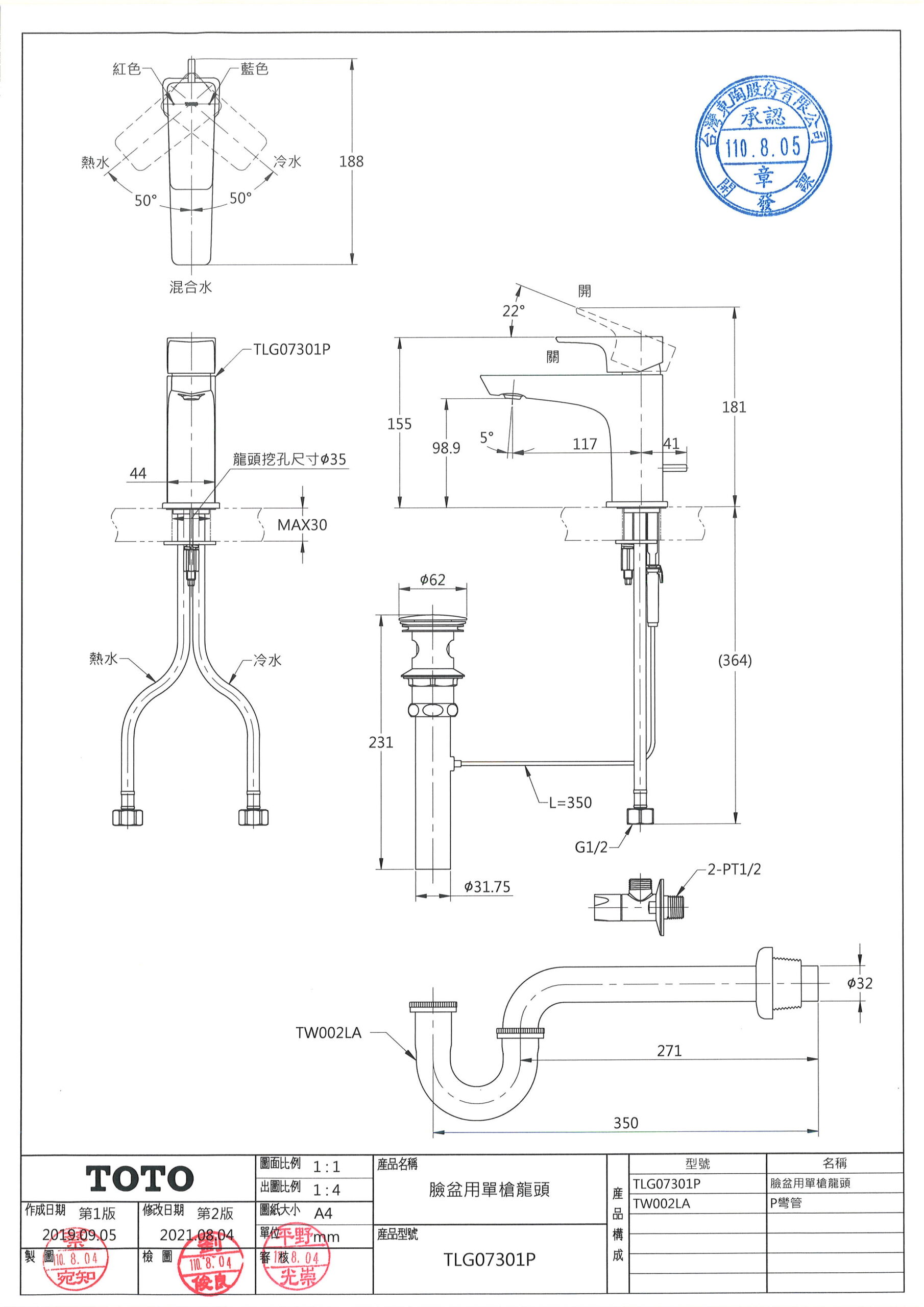 TOTO TLG07301P 臉盆用單槍龍頭 (短)