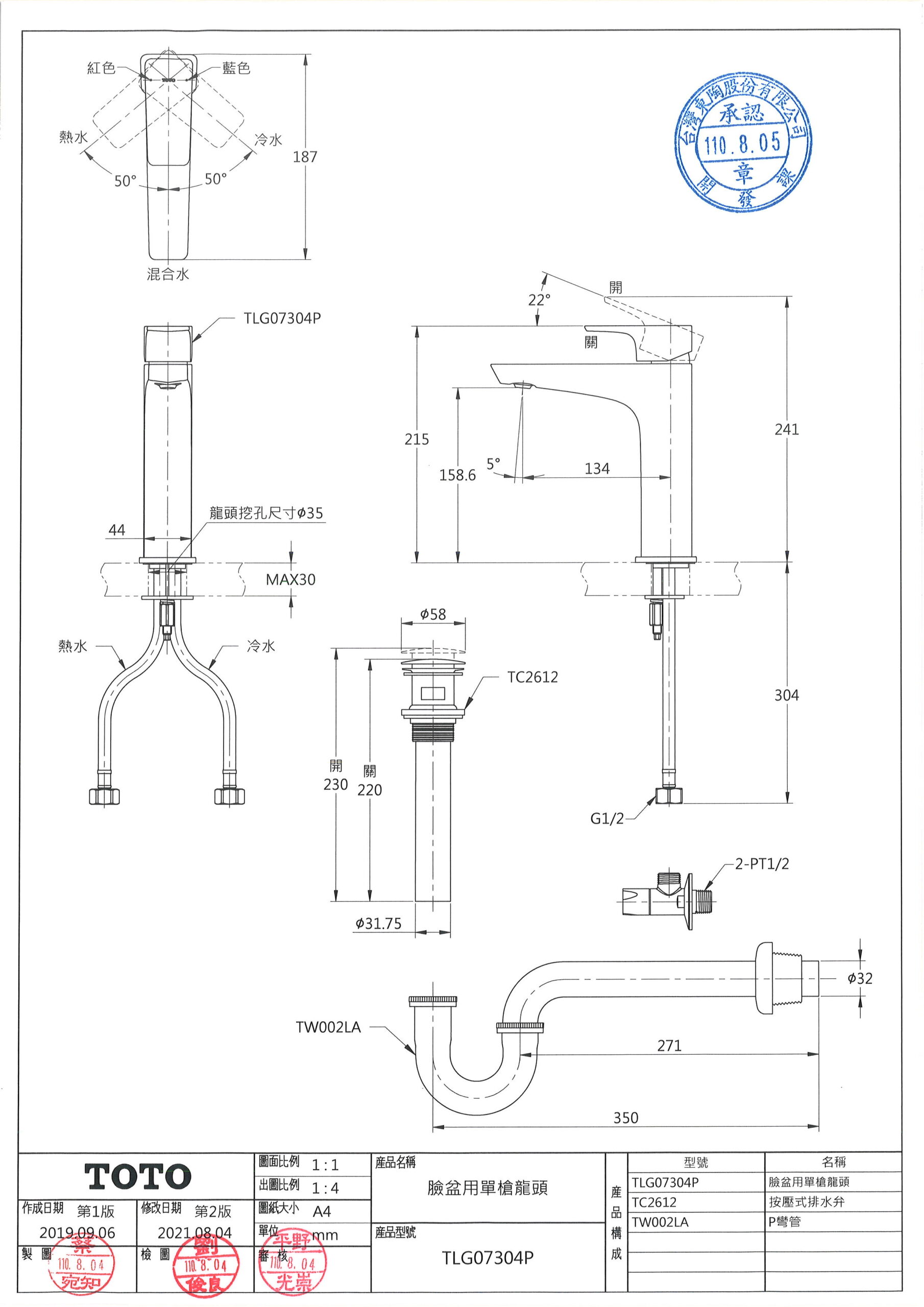 TOTO面盆龍頭尺寸圖
