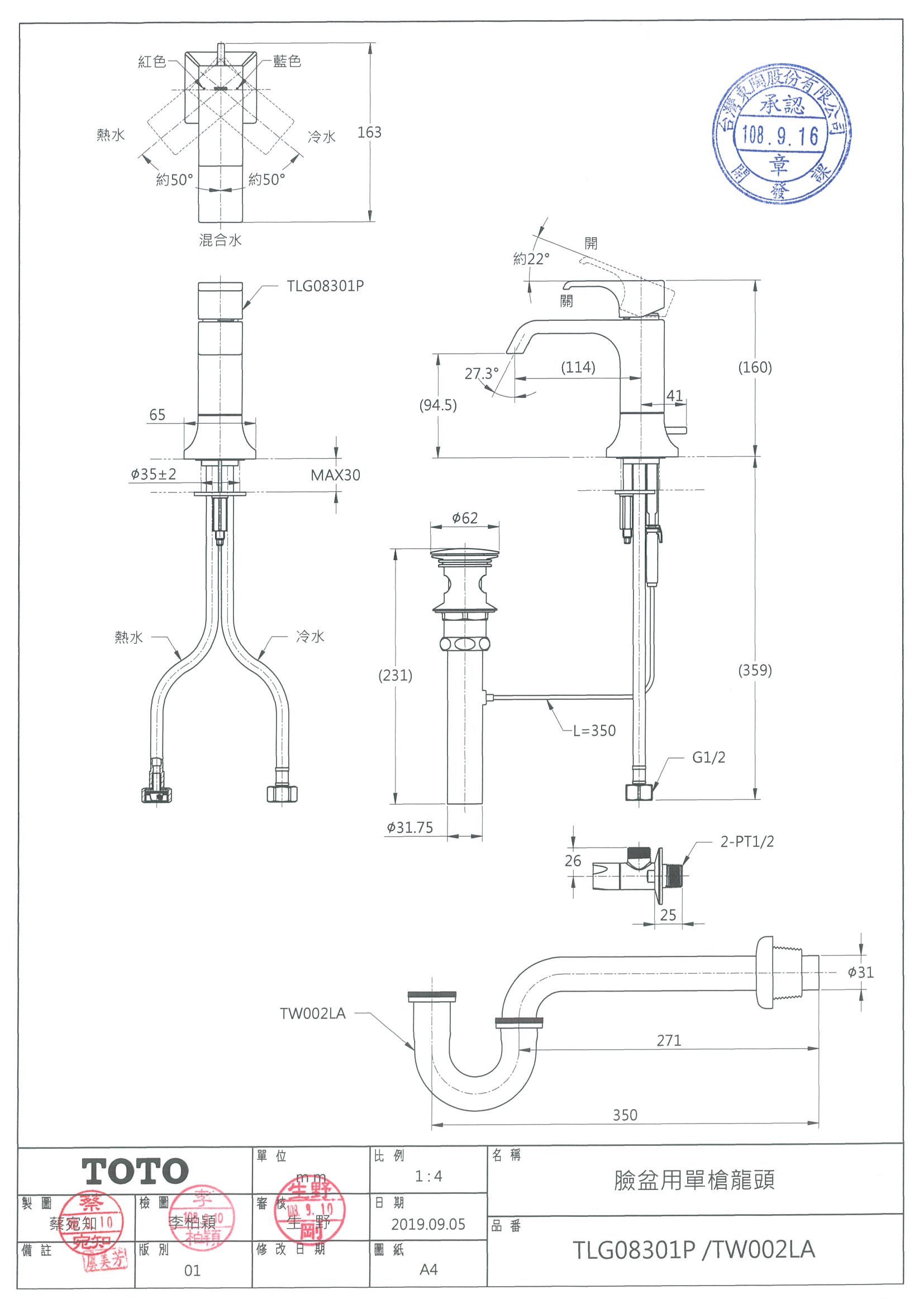 TOTO TLG08301P 臉盆用單槍龍頭 (短) 數量